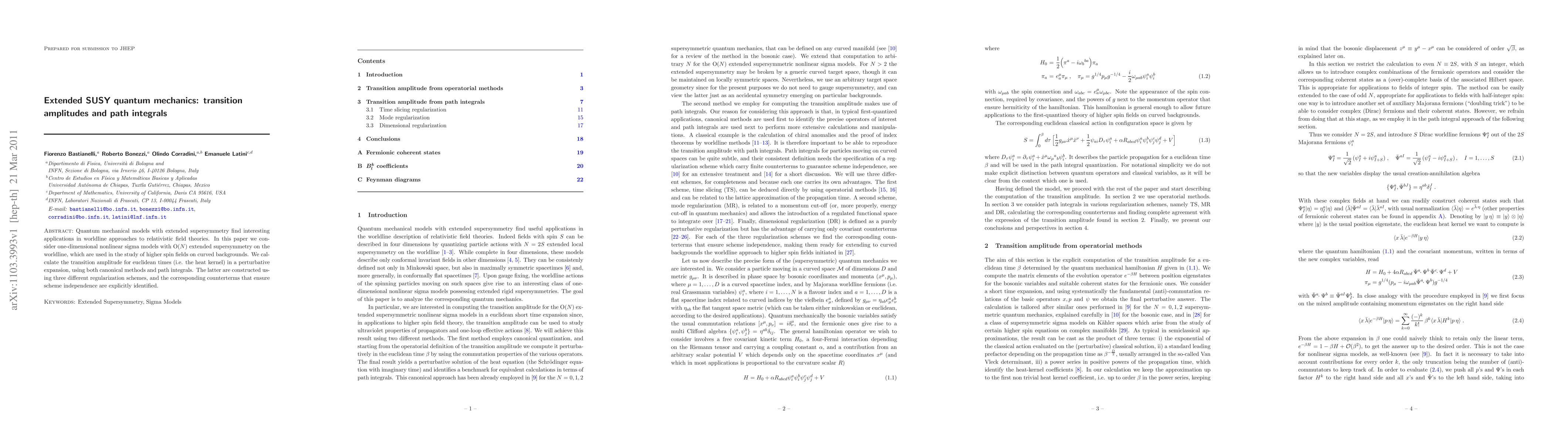Quantum mechanical models with extended supersymmetry find interesting applications in worldline approaches to relativistic field theories. In this paper we consider one-dimensional nonlinear sigma models with O(N) extended supersymmetry on the worldline, which are used in the study of higher spin fields on curved backgrounds. We calculate the transition amplitude for euclidean times (i.e. the heat kernel) in a perturbative expansion, using both canonical methods and path integrals. The latter are constructed using three different regularization schemes, and the corresponding counterterms that ensure scheme independence are explicitly identified.