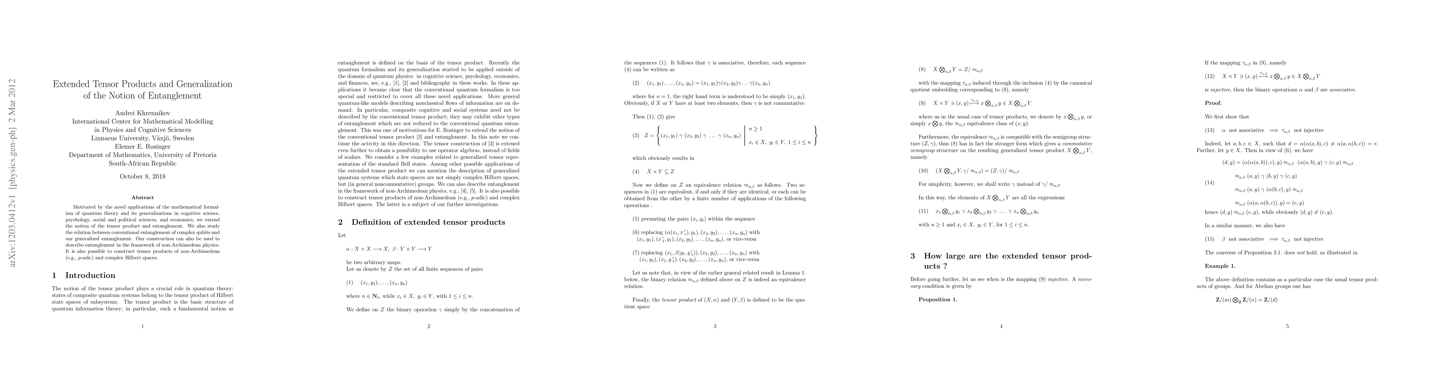 Researchers extend the concept of entanglement to non-Archimedean physics and complex Hilbert spaces, with implications for applications in cognitive science and beyond.