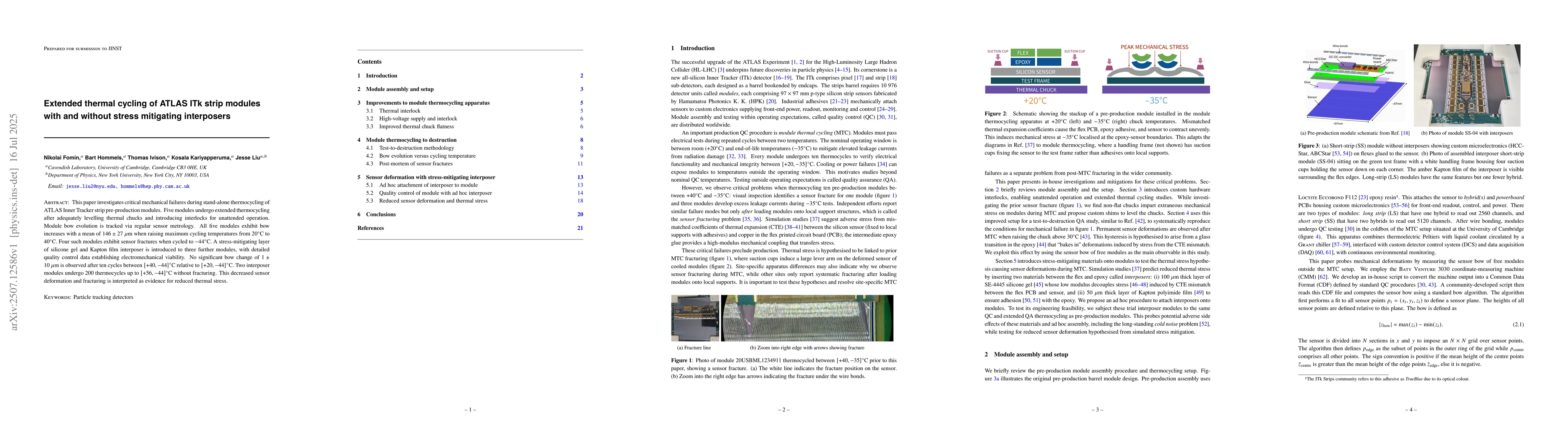 This paper investigates critical mechanical failures during stand-alone thermocycling of ATLAS Inner Tracker strip pre-production modules. Five modules undergo extended thermocycling after adequately levelling thermal chucks and introducing interlocks for unattended operation. Module bow evolution is tracked via regular sensor metrology. All five modules exhibit bow increases with a mean of $146\pm 27~\mu$m when raising maximum cycling temperatures from $20^\circ$C to $40^\circ$C. Four such modules exhibit sensor fractures when cycled to $-44^\circ$C. A stress-mitigating layer of silicone gel and Kapton film interposer is introduced to three further modules, with detailed quality control data establishing electromechanical viability. No significant bow change of $1\pm 10~\mu$m is observed after ten cycles between $[+40, -44]^\circ$C relative to $[+20, -44]^\circ$C. Two interposer modules undergo 200 thermocycles up to $[+56, -44]^\circ$C without fracturing. This decreased sensor deformation and fracturing is interpreted as evidence for reduced thermal stress.