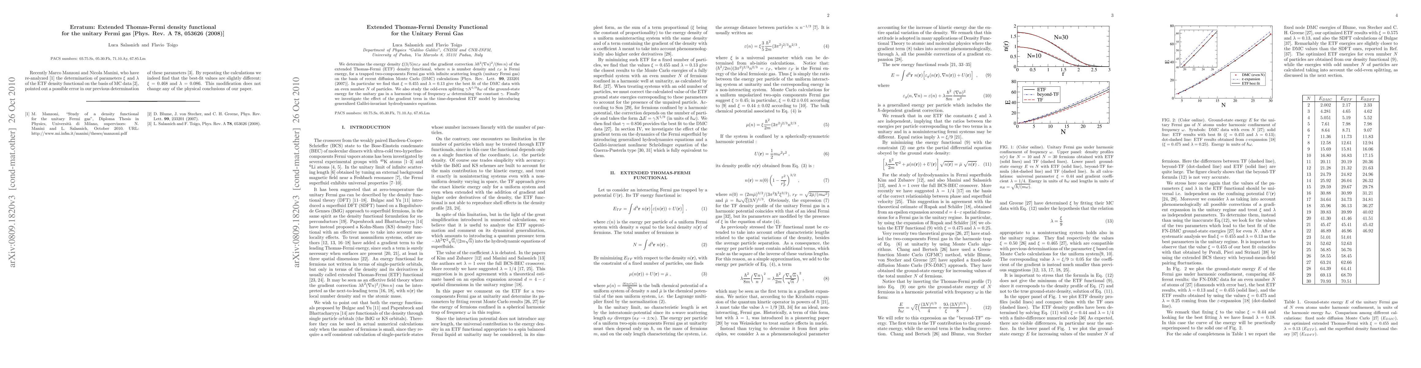 This paper determines the energy density and gradient correction of the extended Thomas-Fermi density functional for a unitary Fermi gas, finding $\xi=0.455$ and $\lambda=0.13$ that best fit recent Monte Carlo data. It also investigates the odd-even splitting constant $\gamma$ and the effect of the gradient term in the time-dependent ETF model.