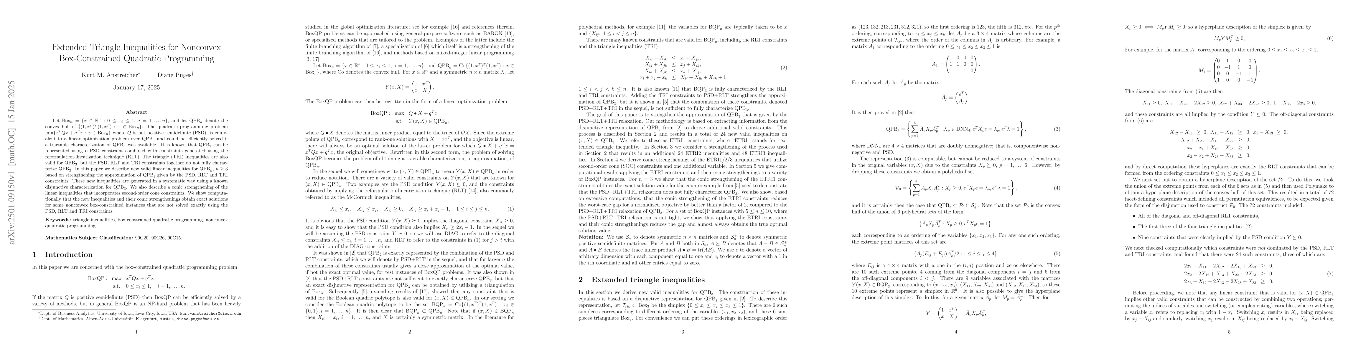 This paper develops new valid linear inequalities for the convex hull of nonconvex box-constrained quadratic programming, enhancing the approximation provided by PSD, RLT, and TRI constraints. It also introduces conic strengthenings with second-order cone constraints, demonstrating improved computational performance for solving exact nonconvex instances.