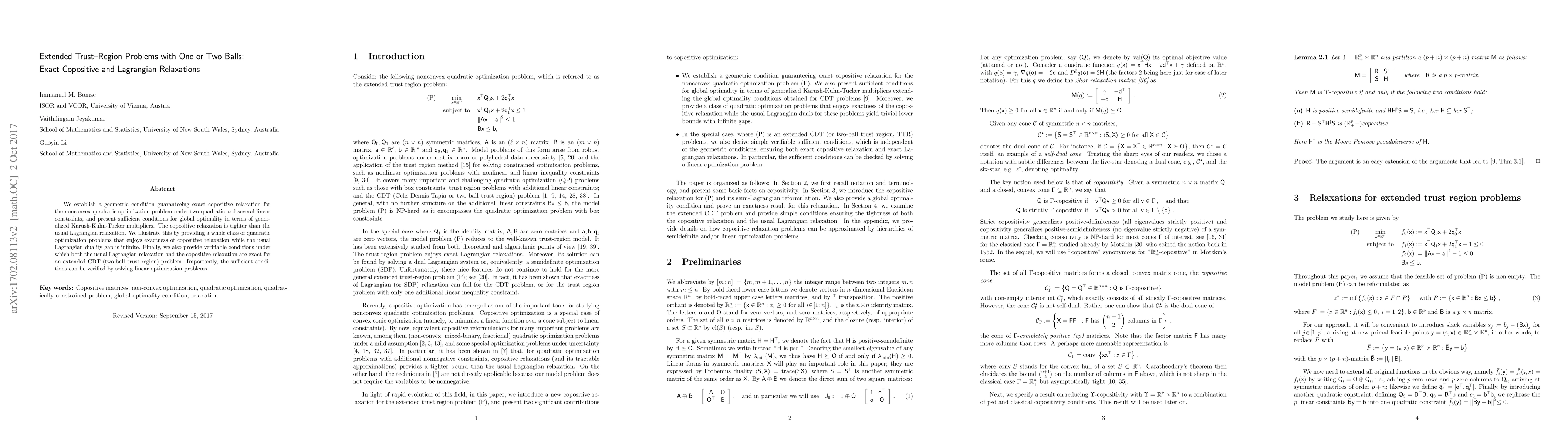 This paper establishes a geometric condition for exact copositive relaxation in extended trust-region problems, showing it is tighter than usual Lagrangian relaxation. It provides sufficient conditions for global optimality and illustrates exactness with a class of quadratic optimization problems, while also offering conditions for exactness in extended CDT problems.