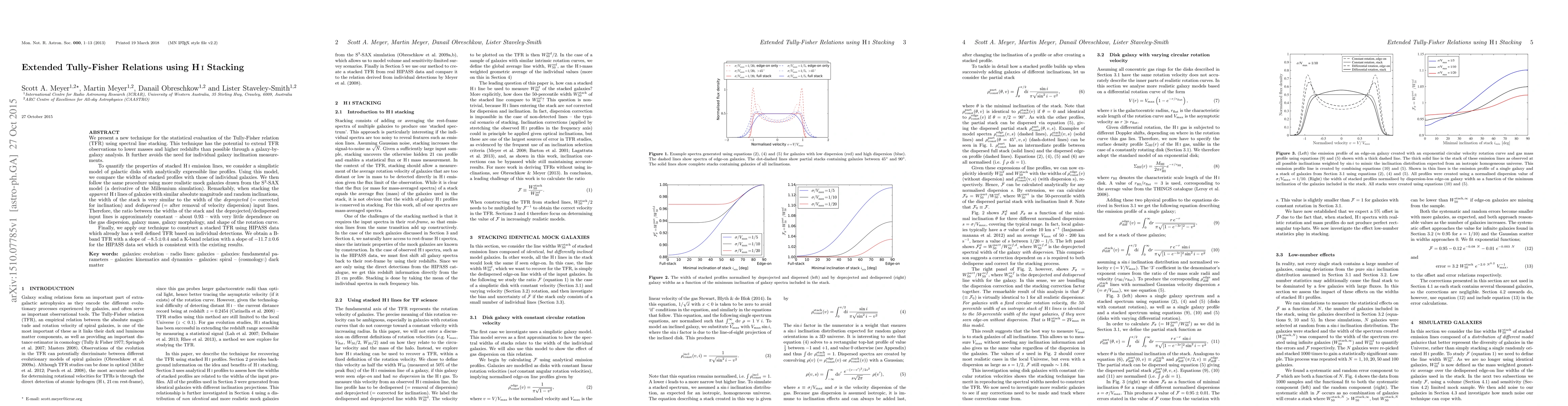 This paper introduces a spectral line stacking method to extend the Tully-Fisher relation (TFR) to lower masses and higher redshifts, avoiding individual galaxy inclination measurements. The technique shows consistent results with both simplistic models and more realistic mock galaxies, yielding a TFR slope of $-8.5\pm0.4$ in B-band and $-11.7\pm0.6$ in K-band using HIPASS data.