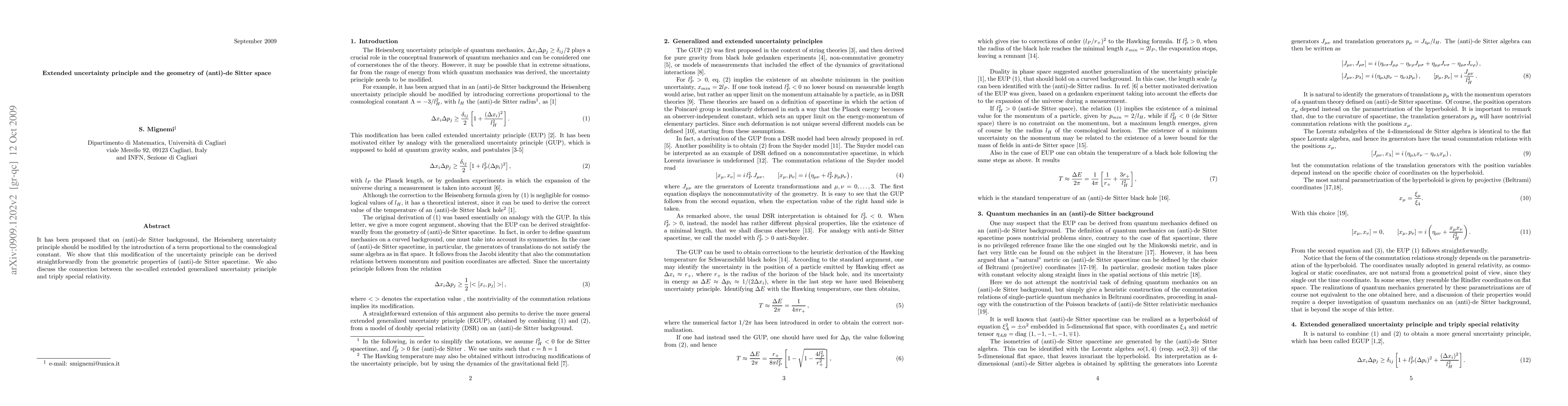 This paper proposes a modification of the Heisenberg uncertainty principle on (anti)-de Sitter backgrounds, deriving it from the geometric properties of the spacetime. It also explores the link between this extended uncertainty principle and triply special relativity.