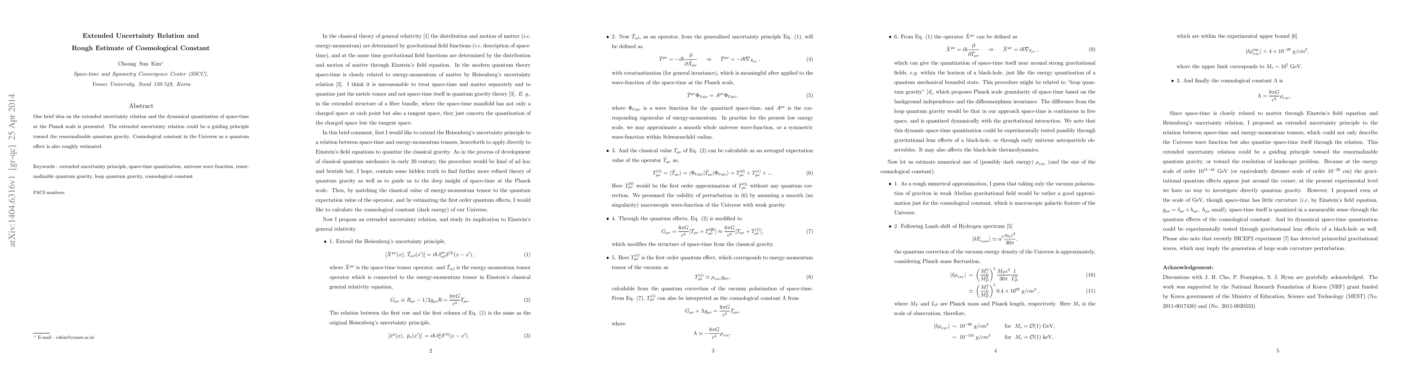 One brief idea on the extended uncertainty relation and the dynamical quantization of space-time at the Planck scale is presented. The extended uncertainty relation could be a guiding principle toward the renormalizable quantum gravity. Cosmological constant in the Universe as a quantum effect is also roughly estimated.