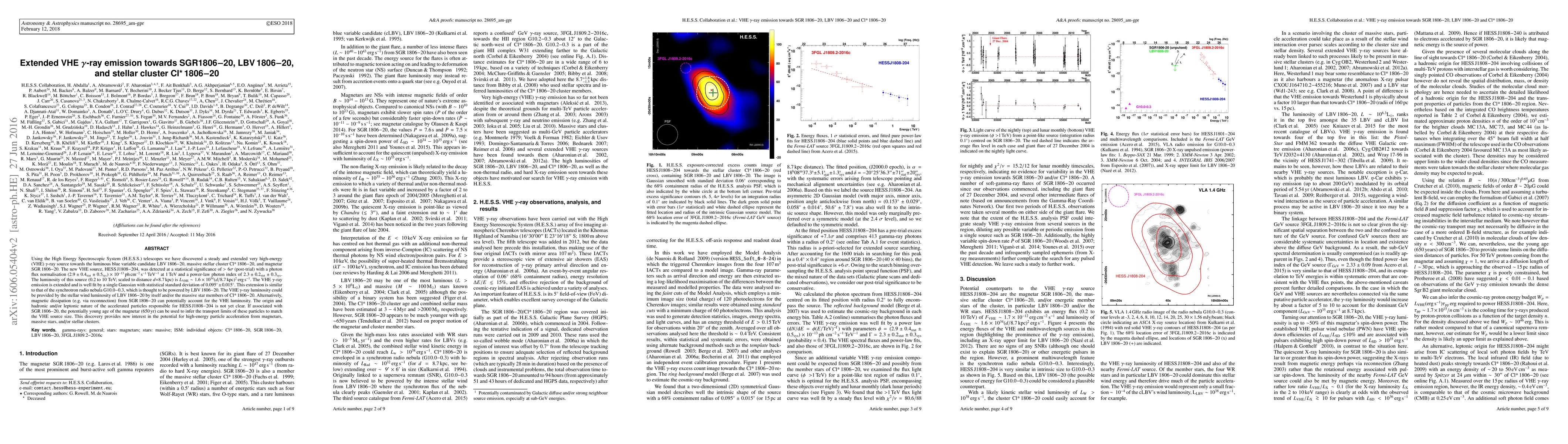 Using the High Energy Spectroscopic System (H.E.S.S.) telescopes we have discovered a steady and extended very high-energy (VHE) gamma-ray source towards the luminous blue variable candidate LBV1806-20, massive stellar cluster Cl*1806-20, and magnetar SGR1806-20. The new VHE source, HESSJ1808-204, was detected at a statistical significance of >6sigma (post-trial) with a photon flux normalisation $(2.9 \pm 0.4_{\rm stat} \pm 0.5_{\rm sys})\times 10^{-13}$\,ph\,cm$^{-2}$\,s$^{-1}$\,TeV$^{-1}$ at 1TeV and a power-law photon index of $2.3\pm0.2_{\rm stat}\pm 0.3_{\rm sys}$. The luminosity of this source (0.2 to 10 TeV; scaled to distance d=8.7kpc) is $L_{\rm VHE}\sim1.6 \times 10^{34}(d/{8.7kpc})^2$\,erg\,s$^{-1}$. The VHE gamma-ray emission is extended and is well fit by a single Gaussian with statistical standard deviation of $0.095^\circ \pm 0.015^\circ$. This extension is similar to that of the synchrotron radio nebula G10.0-0.3, which is thought to be powered by LBV1806-20. The VHE gamma-ray luminosity could be provided by the stellar wind luminosity of LBV1806-20 by itself and/or the massive star members of Cl*1806-20. Alternatively, magnetic dissipation (e.g. via reconnection) from SGR1806-20 can potentially account for the VHE luminosity. The origin and hadronic and/or leptonic nature of the accelerated particles responsible for HESSJ1808-204 is not yet clear. If associated with SGR1806-20, the potentially young age of the magnetar (650yr) can be used to infer the transport limits of these particles to match the VHE source size. This discovery provides new interest in the potential for high-energy particle acceleration from magnetars, massive stars, and/or stellar clusters.