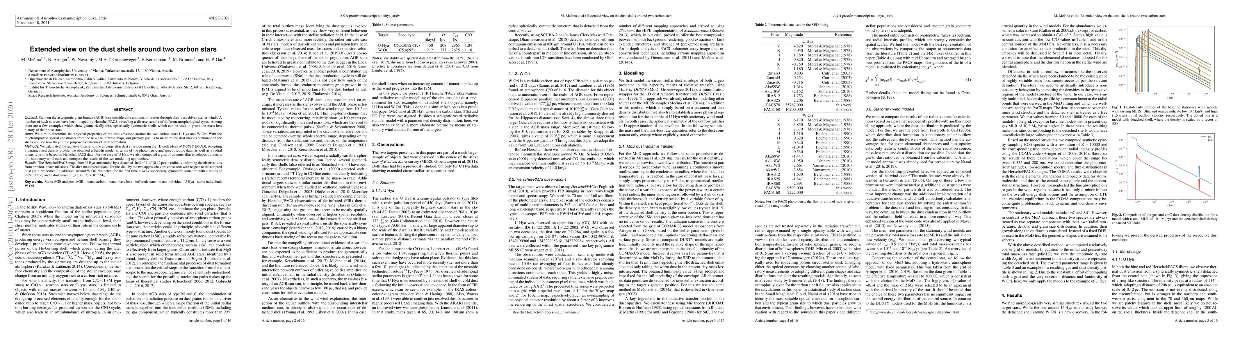 This study investigates the dust shells around two carbon stars, U Hya and W Ori, using improved spatial data from Herschel/PACS. The research aims to determine the physical properties and dust masses of these shells, employing radiative transfer models and comparing results from different modelling approaches. The findings reveal a detached shell around U Hya and a newly detected weak shell around W Ori, providing insights into the mass loss history of their host stars.