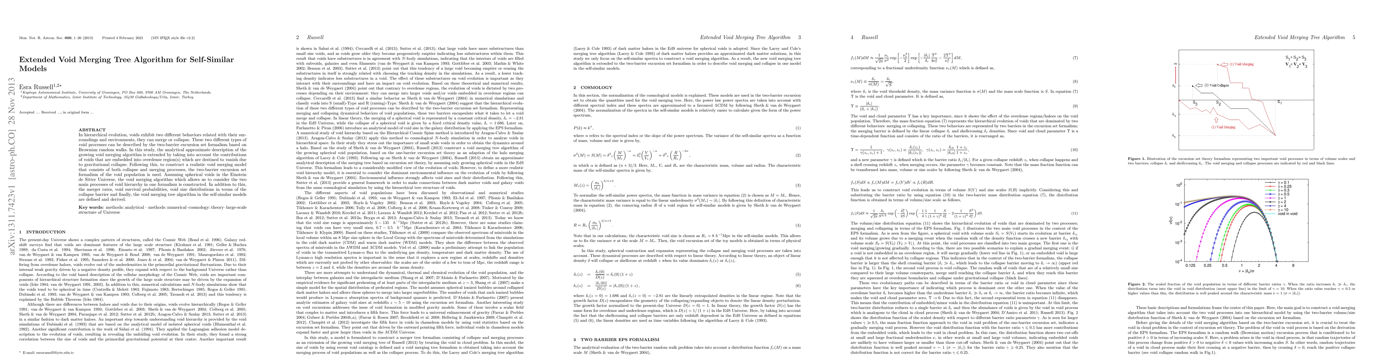 Researchers develop an algorithm to model void merging in the universe, considering both collapse and merging processes, and derive key findings on merger rates, void survival probabilities, and size distributions.