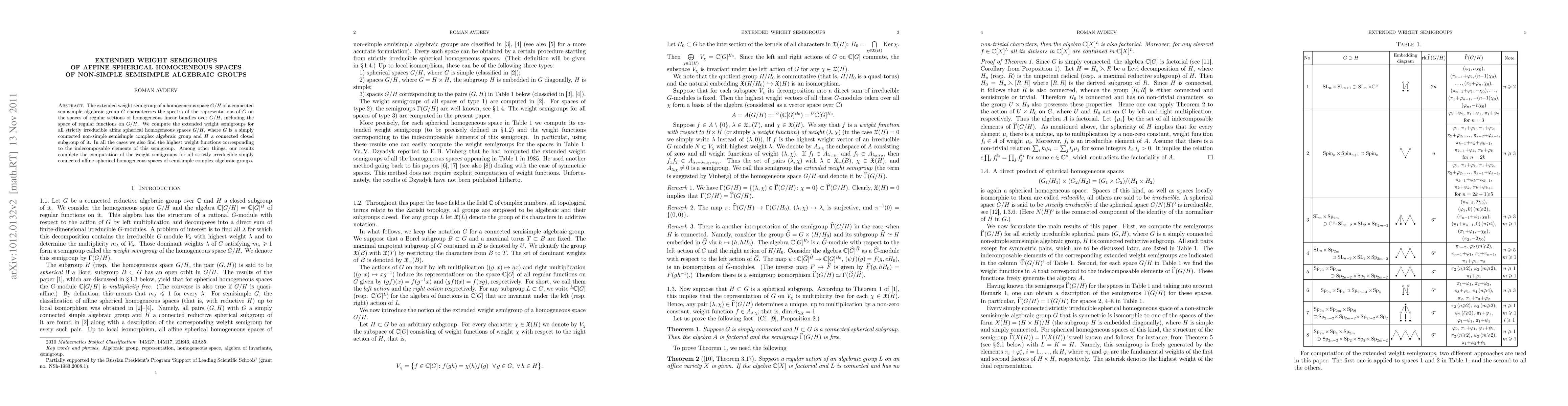 The paper computes extended weight semigroups for strictly irreducible affine spherical homogeneous spaces of non-simple semisimple algebraic groups, providing key findings on characterizing representation spectra and completing previous computations.