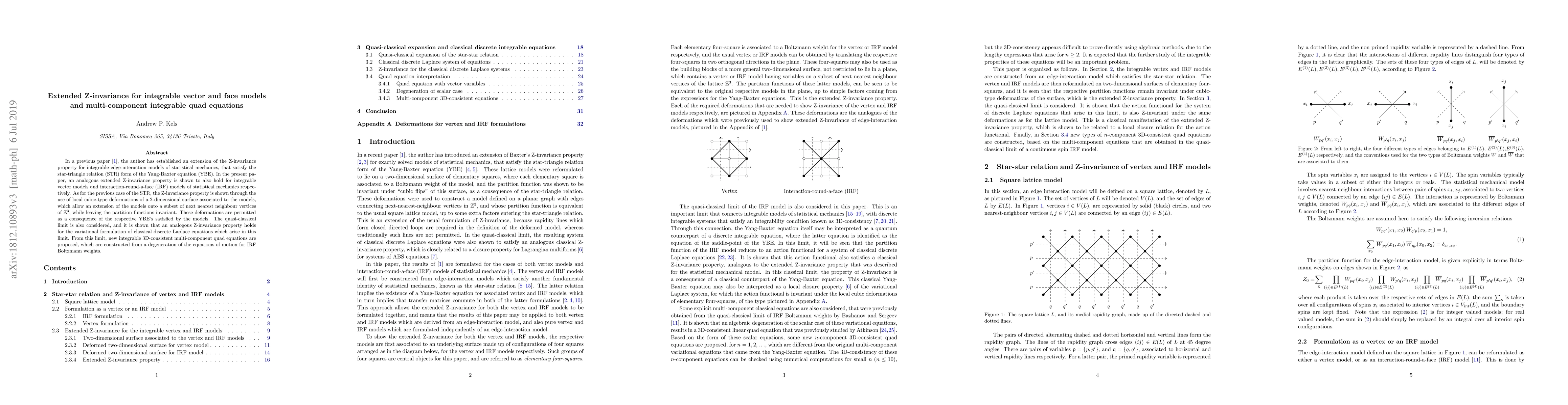 In a previous paper, the author has established an extension of the Z-invariance property for integrable edge-interaction models of statistical mechanics, that satisfy the star-triangle relation (STR) form of the Yang-Baxter equation (YBE). In the present paper, an analogous extended Z-invariance property is shown to also hold for integrable vector models and interaction-round-a-face (IRF) models of statistical mechanics respectively. As for the previous case of the STR, the Z-invariance property is shown through the use of local cubic-type deformations of a 2-dimensional surface associated to the models, which allow an extension of the models onto a subset of next nearest neighbour vertices of $\mathbb{Z}^3$, while leaving the partition functions invariant. These deformations are permitted as a consequence of the respective YBE's satisfied by the models. The quasi-classical limit is also considered, and it is shown that an analogous Z-invariance property holds for the variational formulation of classical discrete Laplace equations which arise in this limit. From this limit, new integrable 3D-consistent multi-component quad equations are proposed, which are constructed from a degeneration of the equations of motion for IRF Boltzmann weights.
