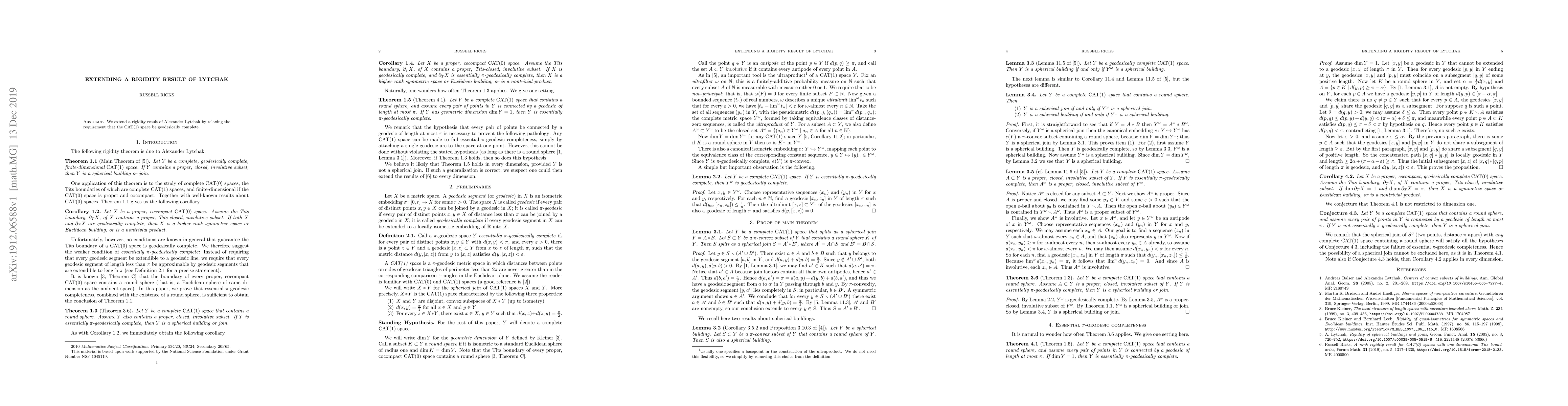 We extend a rigidity result of Alexander Lytchak by relaxing the requirement that the CAT(1) space be geodesically complete.