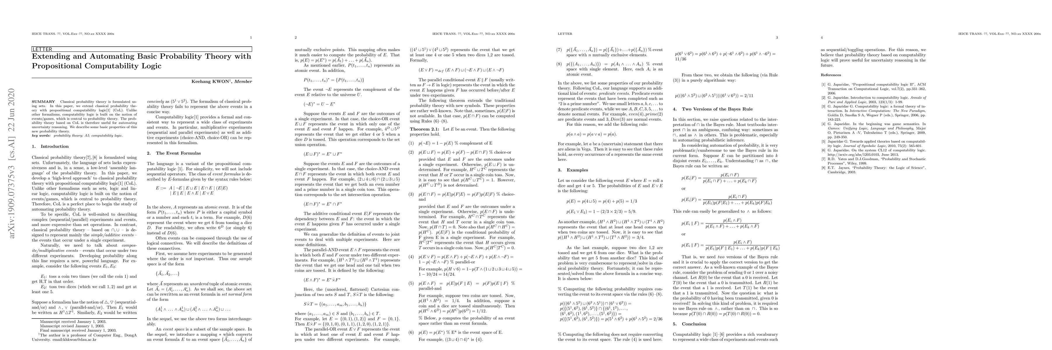 This paper extends classical probability theory by integrating propositional computability logic, offering a framework that automates uncertainty reasoning through event/game-centric operations. It establishes an isomorphism between traditional set operations and computability logic operations.