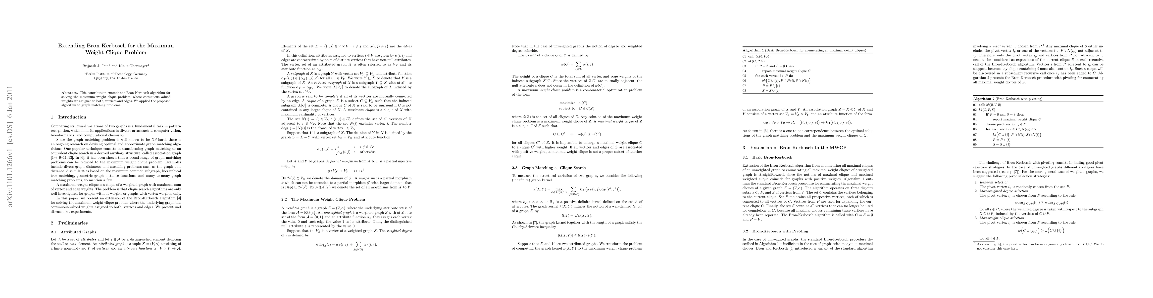 This paper extends the Bron Kerbosch algorithm to solve the maximum weight clique problem with continuous-valued weights on both vertices and edges, and demonstrates its application in graph matching problems.
