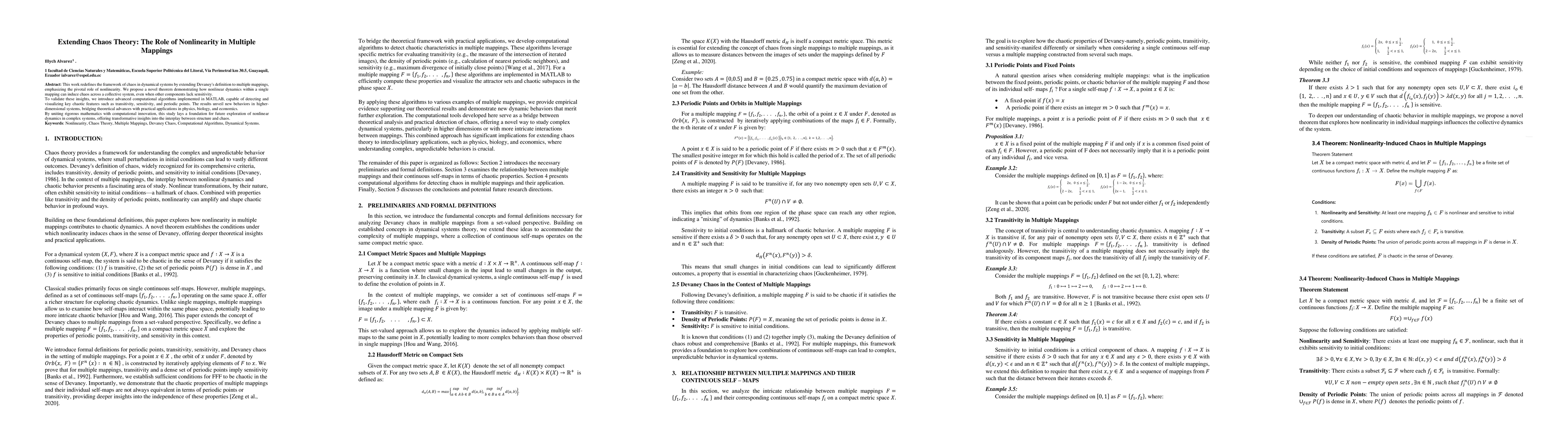 This work redefines the framework of chaos in dynamical systems by extending Devaney's definition to multiple mappings, emphasizing the pivotal role of nonlinearity. We propose a novel theorem demonstrating how nonlinear dynamics within a single mapping can induce chaos across a collective system, even when other components lack sensitivity. To validate these insights, we introduce advanced computational algorithms implemented in MATLAB, capable of detecting and visualizing key chaotic features such as transitivity, sensitivity, and periodic points. The results unveil new behaviors in higherdimensional systems, bridging theoretical advances with practical applications in physics, biology, and economics. By uniting rigorous mathematics with computational innovation, this study lays a foundation for future exploration of nonlinear dynamics in complex systems, offering transformative insights into the interplay between structure and chaos. Keywords: Nonlinearity, Chaos Theory, Multiple Mappings, Devaney Chaos, Computational Algorithms, Dynamical Systems.