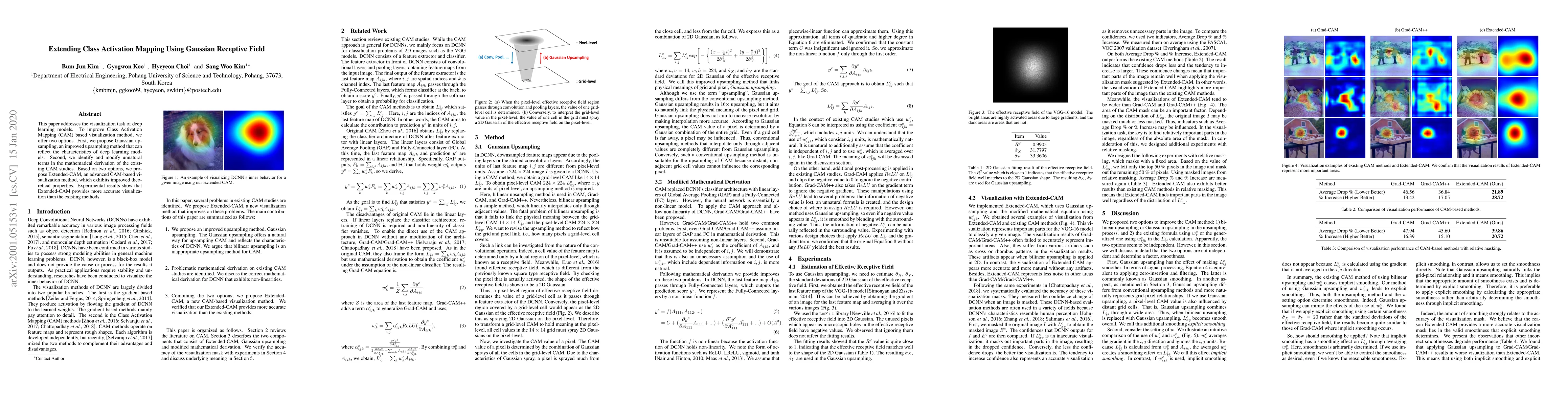 This paper addresses the visualization task of deep learning models. To improve Class Activation Mapping (CAM) based visualization method, we offer two options. First, we propose Gaussian upsampling, an improved upsampling method that can reflect the characteristics of deep learning models. Second, we identify and modify unnatural terms in the mathematical derivation of the existing CAM studies. Based on two options, we propose Extended-CAM, an advanced CAM-based visualization method, which exhibits improved theoretical properties. Experimental results show that Extended-CAM provides more accurate visualization than the existing methods.