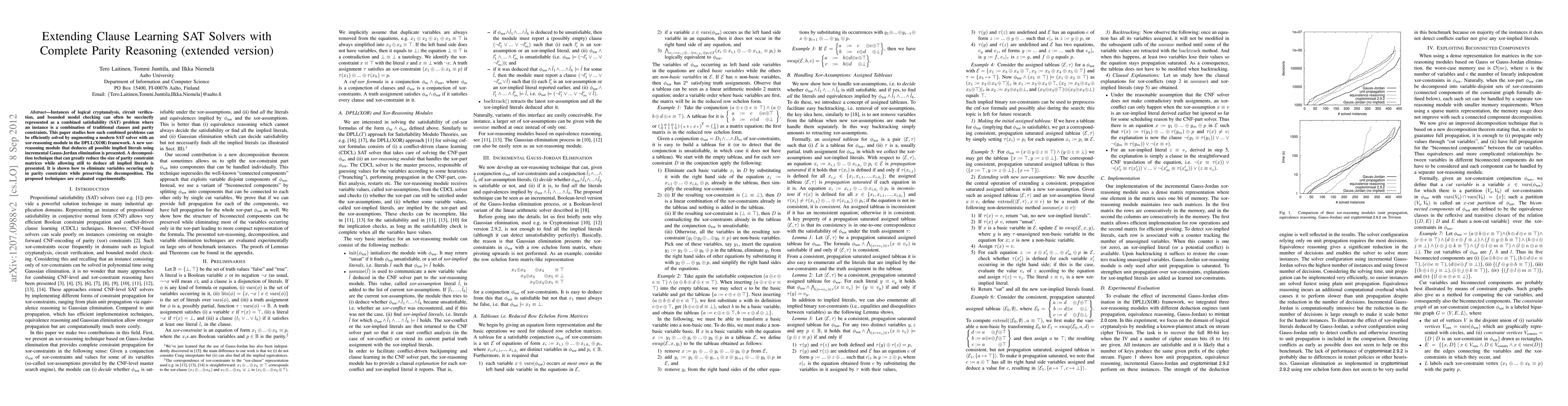 This paper proposes enhancements to SAT solvers by incorporating an xor-reasoning module for solving combined SAT problems with parity constraints, using incremental Gauss-Jordan elimination and a decomposition technique to reduce matrix size while preserving reasoning capabilities. Experimental evaluations demonstrate the effectiveness of the proposed methods.