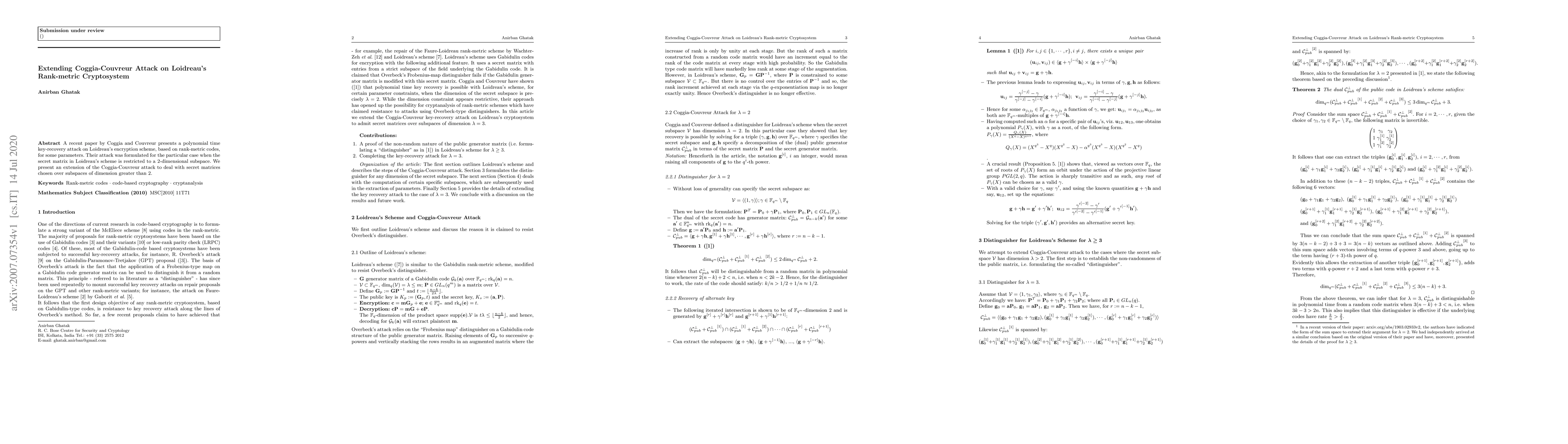 A recent paper by Coggia and Couvreur presents a polynomial time key-recovery attack on Loidreau's encryption scheme, based on rank-metric codes, for some parameters. The secret matrix component of Loidreau's scheme is chosen over a defining subspace of the field associated with the rank-metric code. We partially extend the Coggia-Couvreur attack to deal with the case when the defining subspace has dimension greater than 2.