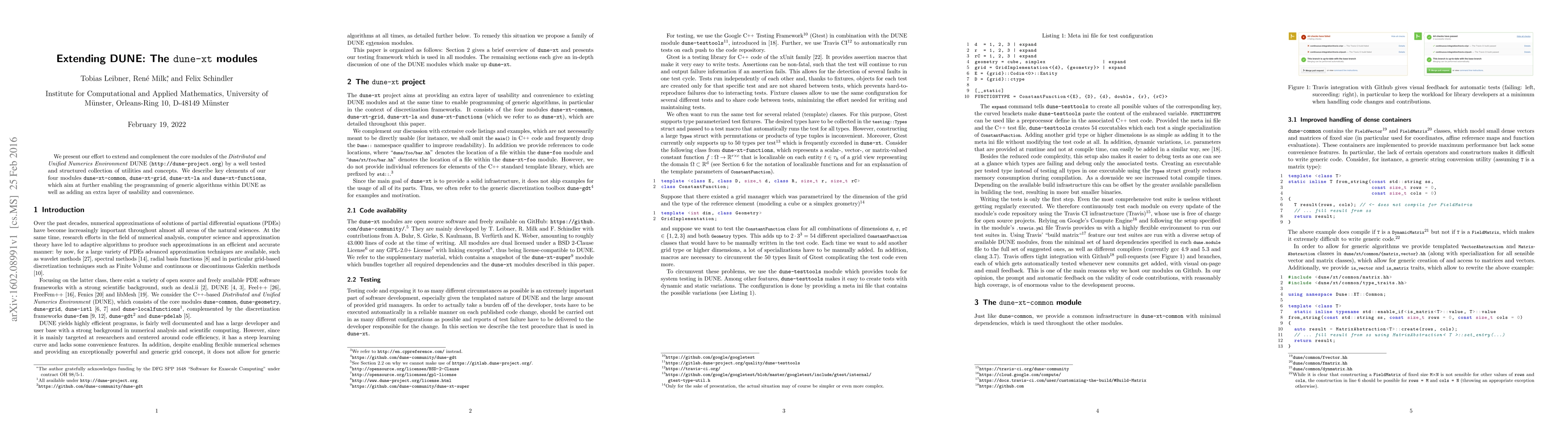 This paper extends the DUNE framework with a set of new modules, including dune-xt-common, dune-xt-grid, dune-xt-la, and dune-xt-functions, to enhance the programming of generic algorithms and improve usability and convenience. The new modules aim to complement the core DUNE functionalities.