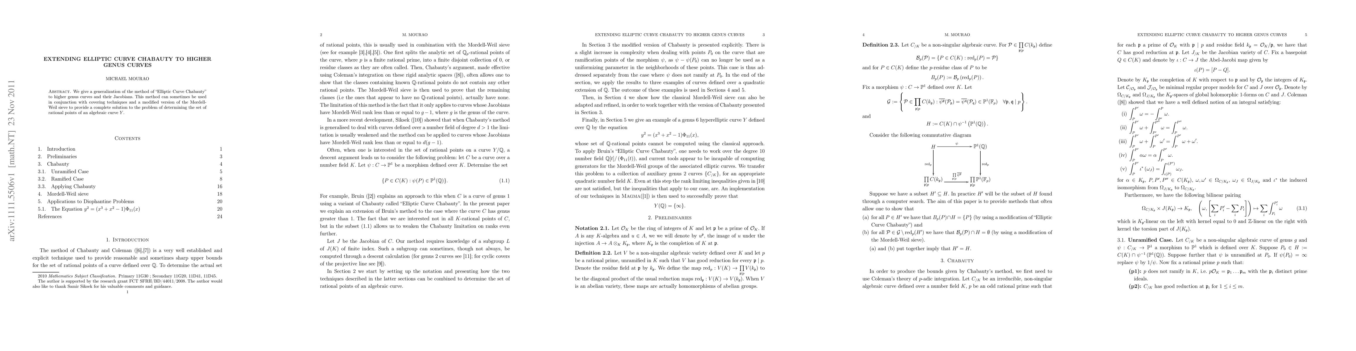 We give a generalization of the method of "Elliptic Curve Chabauty" to higher genus curves and their Jacobians. This method can sometimes be used in conjunction with covering techniques and a modified version of the Mordell-Weil sieve to provide a complete solution to the problem of determining the set of rational points of an algebraic curve $Y$.