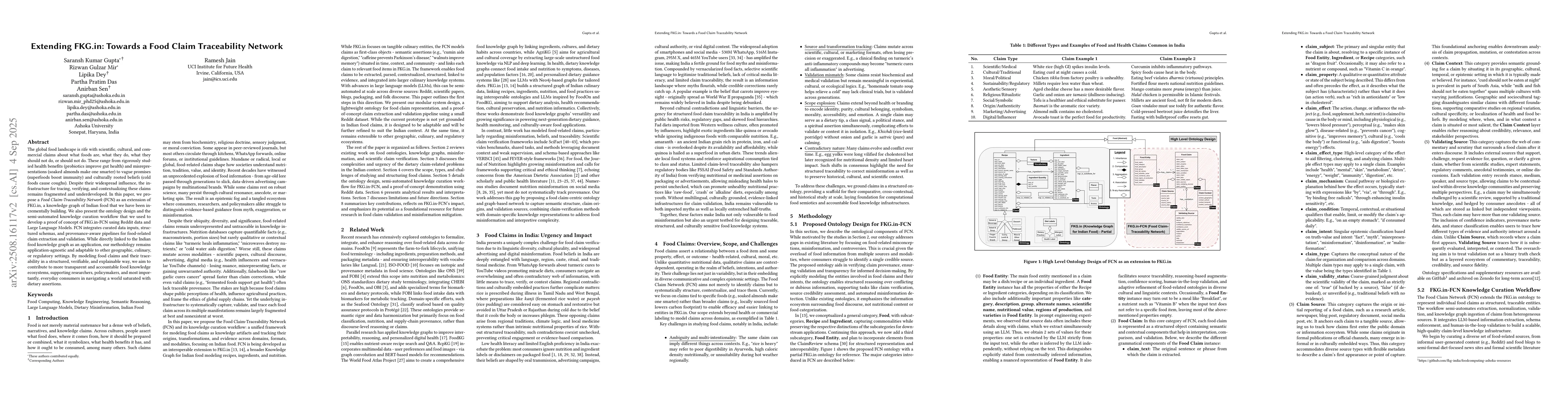 The global food landscape is rife with scientific, cultural, and commercial claims about what foods are, what they do, what they should not do, or should not do. These range from rigorously studied health benefits (probiotics improve gut health) and misrepresentations (soaked almonds make one smarter) to vague promises (superfoods boost immunity) and culturally rooted beliefs (cold foods cause coughs). Despite their widespread influence, the infrastructure for tracing, verifying, and contextualizing these claims remains fragmented and underdeveloped. In this paper, we propose a Food Claim-Traceability Network (FCN) as an extension of FKG[.]in, a knowledge graph of Indian food that we have been incrementally building. We also present the ontology design and the semi-automated knowledge curation workflow that we used to develop a proof of concept of FKG[.]in-FCN using Reddit data and Large Language Models. FCN integrates curated data inputs, structured schemas, and provenance-aware pipelines for food-related claim extraction and validation. While directly linked to the Indian food knowledge graph as an application, our methodology remains application-agnostic and adaptable to other geographic, culinary, or regulatory settings. By modeling food claims and their traceability in a structured, verifiable, and explainable way, we aim to contribute to more transparent and accountable food knowledge ecosystems, supporting researchers, policymakers, and most importantly, everyday consumers in navigating a world saturated with dietary assertions.