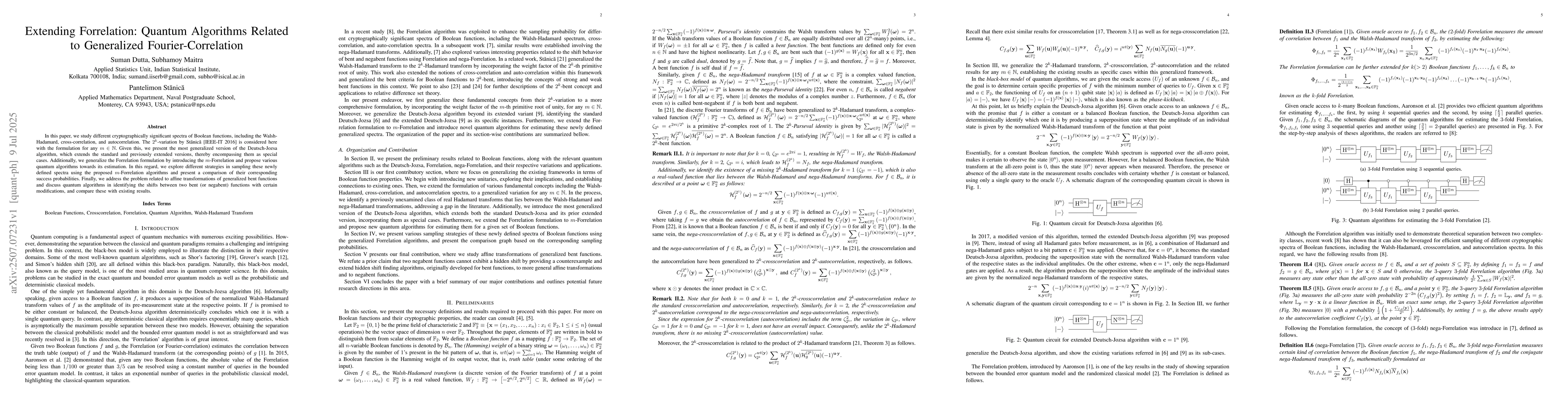 In this paper, we study different cryptographically significant spectra of Boolean functions, including the Walsh-Hadamard, cross-correlation, and autocorrelation. The $2^k$-variation by Stanica [IEEE-IT 2016] is considered here with the formulation for any $m \in \mathbb{N}$. Given this, we present the most generalized version of the Deutsch-Jozsa algorithm, which extends the standard and previously extended versions, thereby encompassing them as special cases. Additionally, we generalize the Forrelation formulation by introducing the $m$-Forrelation and propose various quantum algorithms towards its estimation. In this regard, we explore different strategies in sampling these newly defined spectra using the proposed $m$-Forrelation algorithms and present a comparison of their corresponding success probabilities. Finally, we address the problem related to affine transformations of generalized bent functions and discuss quantum algorithms in identifying the shifts between two bent (or negabent) functions with certain modifications, and compare these with existing results.