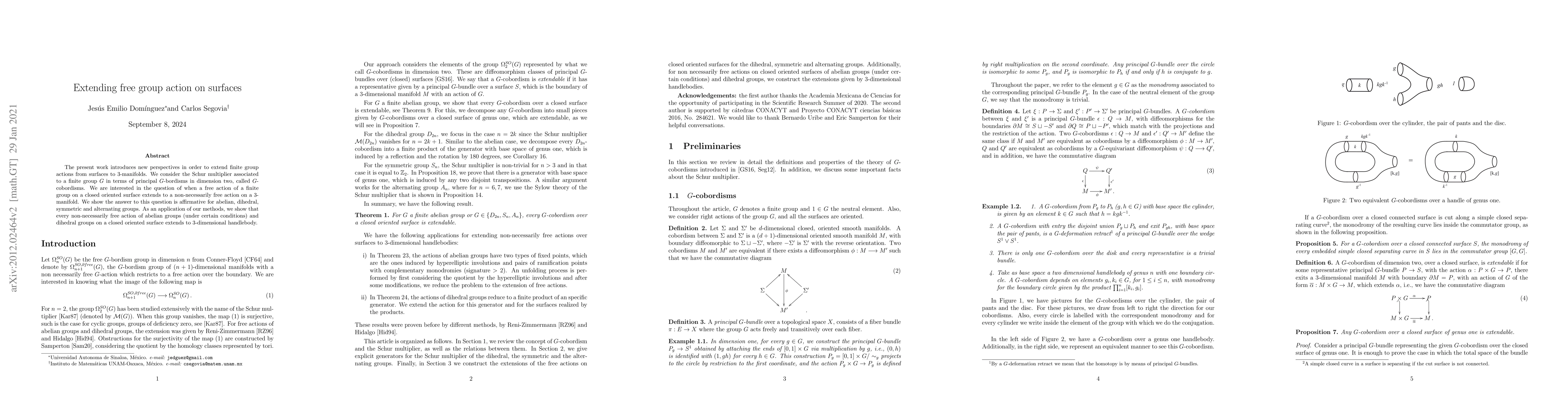 The present work introduces new perspectives in order to extend finite group actions from surfaces to 3-manifolds. We consider the Schur multiplier associated to a finite group $G$ in terms of principal $G$-bordisms in dimension two, called $G$-cobordisms. We are interested in the question of when a free action of a finite group on a closed oriented surface extends to a non-necessarily free action on a 3-manifold. We show the answer to this question is affirmative for abelian, dihedral, symmetric and alternating groups. As an application of our methods, we show that every non-necessarily free action of abelian groups (under certain conditions) and dihedral groups on a closed oriented surface extends to $3$-dimensional handlebody.