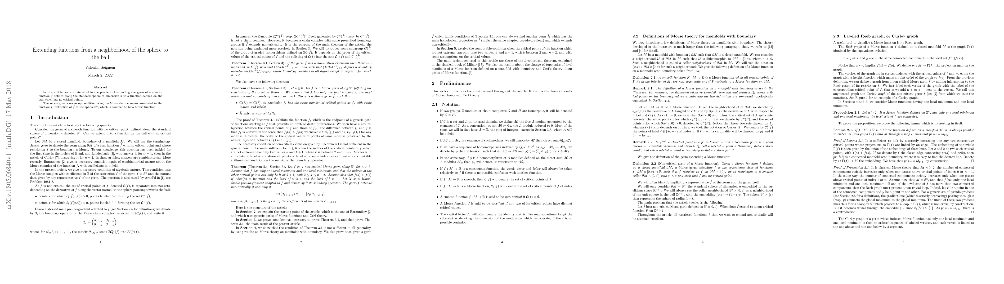 In this article, we are interested in the problem of extending the germ of a smooth function $\tilde{f}$ defined along the standard sphere of dimension $n$ to a function defined on the ball which has no critical points. The article gives a necessary condition using the Morse chain complex associated to the function $f$, restriction of $\tilde{f}$ to the sphere $\mathbb{S}^n$, which is assumed to be a Morse function.