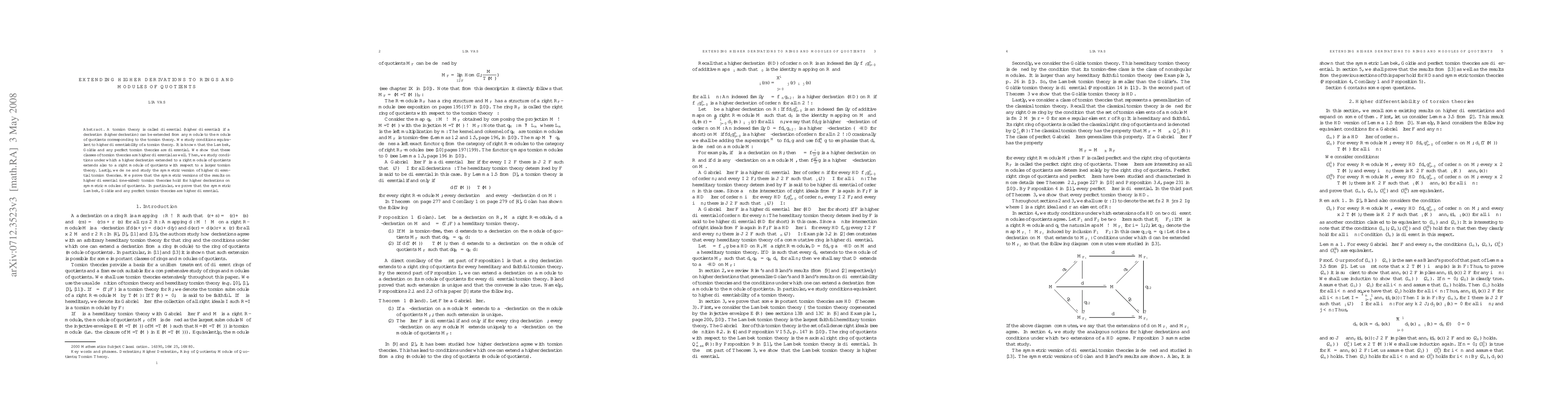 This paper investigates conditions for extending higher derivations to rings and modules of quotients, proving that Lambek, Goldie, and perfect torsion theories are higher differential. It also explores the extension of higher derivations to larger torsion theories and defines symmetric versions of higher differential torsion theories, showing their equivalence to the original theories.