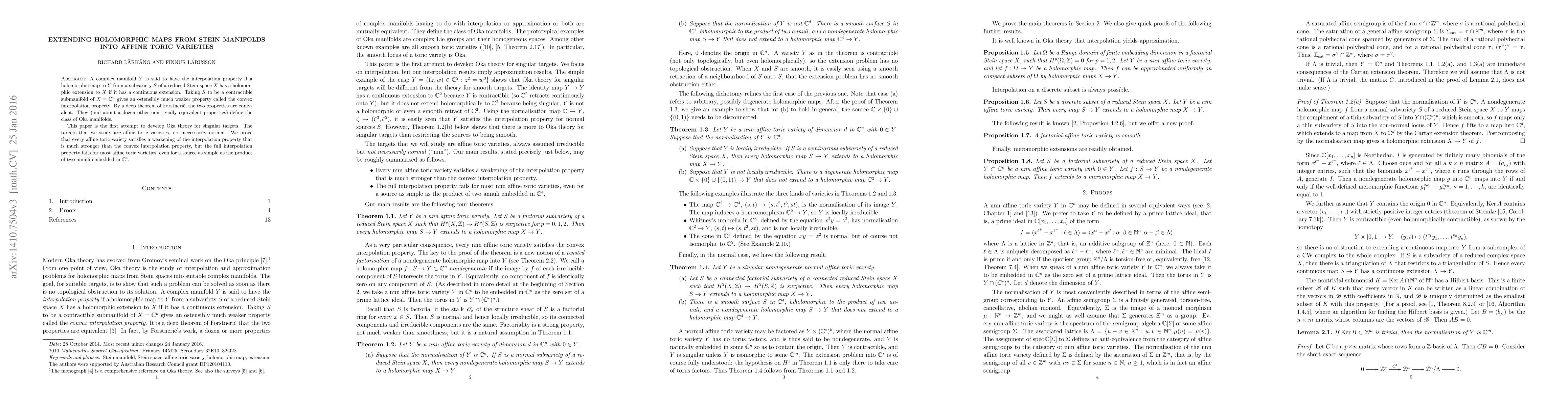 This paper explores extending holomorphic maps from Stein manifolds to affine toric varieties, proving that these varieties satisfy a weakened interpolation property stronger than the convex interpolation property. However, the full interpolation property does not hold for most affine toric varieties, even for simple sources like the product of two annuli.