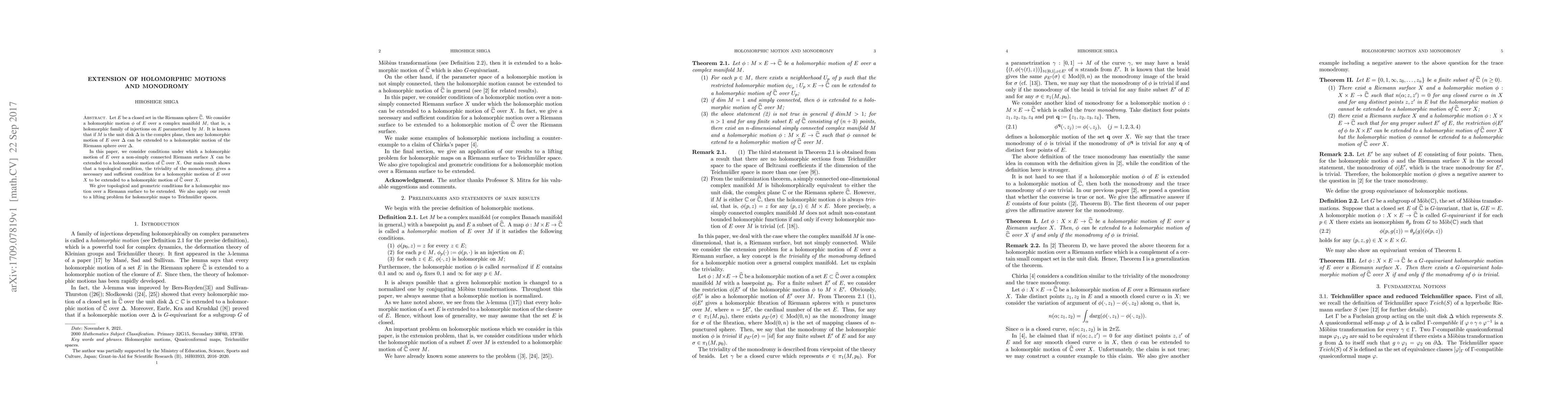 This paper explores the conditions under which a holomorphic motion of a closed set over a non-simply connected Riemann surface can be extended to the entire Riemann sphere. It establishes that the triviality of the monodromy is a necessary and sufficient condition for such an extension.