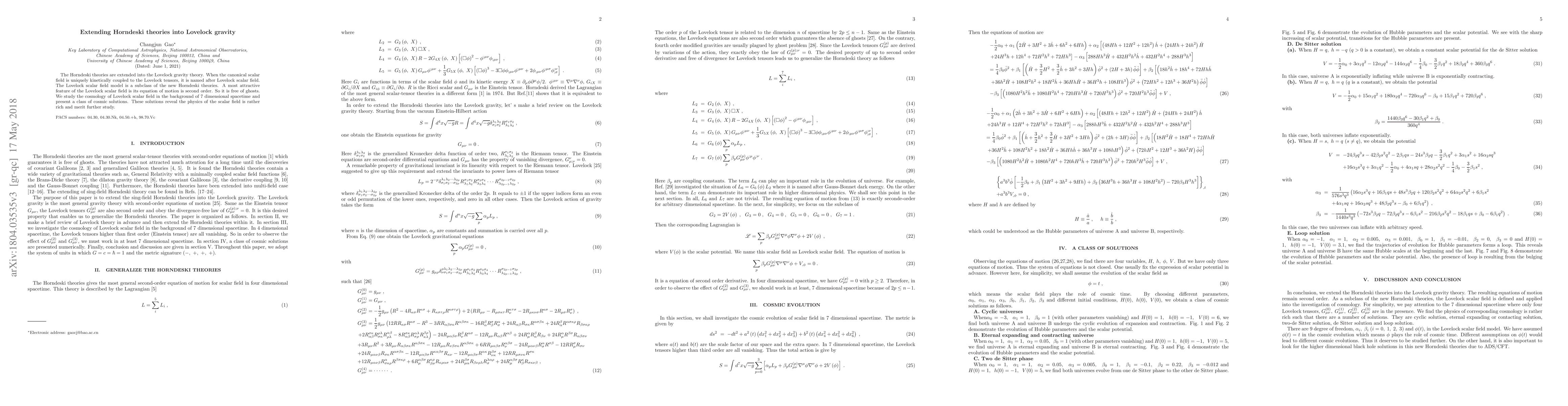 The Horndeski theories are extended into the Lovelock gravity theory. When the canonical scalar field is uniquely kinetically coupled to the Lovelock tensors, it is named after Lovelock scalar field. The Lovelock scalar field model is a subclass of the new Horndeski theories. A most attractive feature of the Lovelock scalar field is its equation of motion is second order. So it is free of ghosts. We study the cosmology of Lovelock scalar field in the background of $7$ dimensional spacetime and present a class of cosmic solutions. These solutions reveal the physics of the scalar field is rather rich and merit further study.