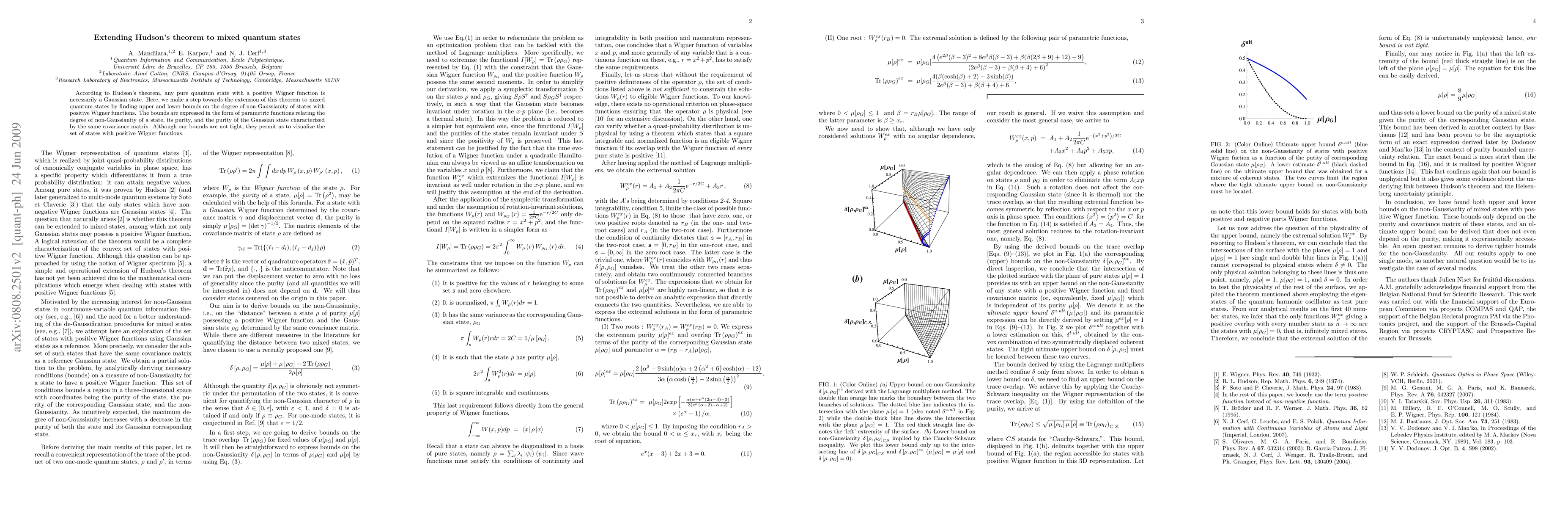 This paper extends Hudson's theorem to mixed quantum states by establishing upper and lower bounds for the degree of non-Gaussianity in states with positive Wigner functions, relating it to the state's purity and the purity of the corresponding Gaussian state. Although the bounds are not tight, they provide insight into the set of such states.