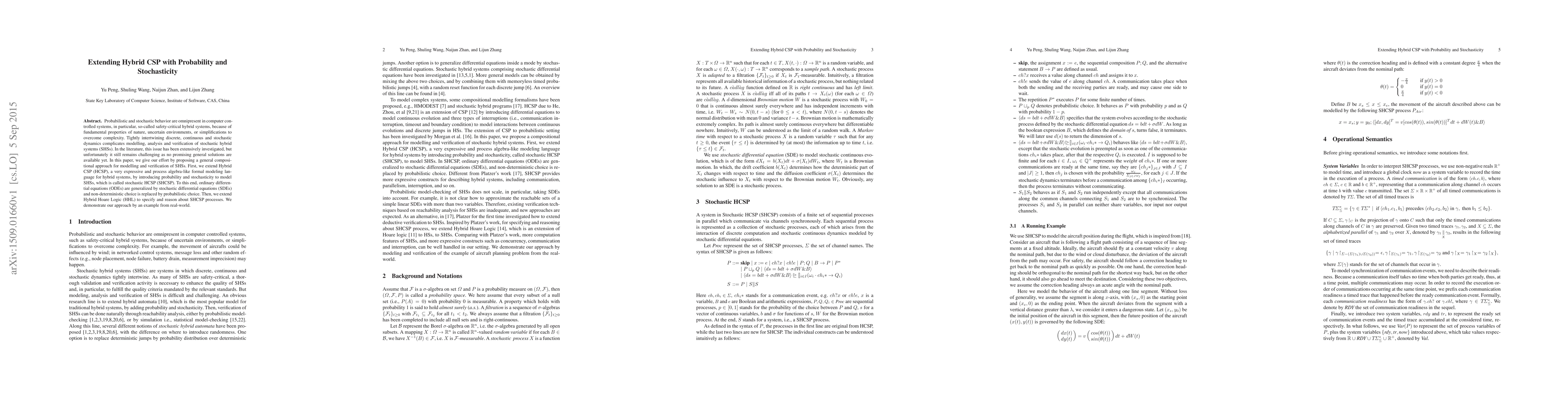 Researchers proposed a new approach to modeling and verifying stochastic hybrid systems (SHSs) using a general compositional framework that extends Hybrid CSP with probability and stochasticity. This enables the analysis of SHSs in real-world applications with uncertain environments or complex dynamics.