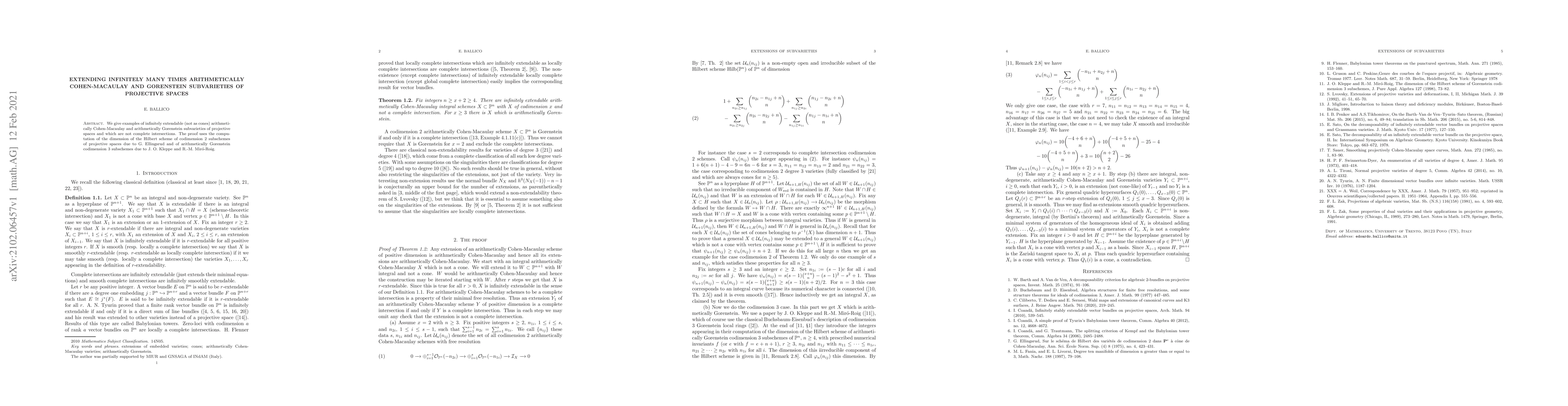 Summary: This paper provides examples of infinitely extendable arithmetically Cohen-Macaulay and Gorenstein subvarieties in projective spaces that are not complete intersections, using results from the dimension of Hilbert schemes by Ellingsrud and contributions on arithmetically Gorenstein subschemes by Kleppe and Miró-Roig.