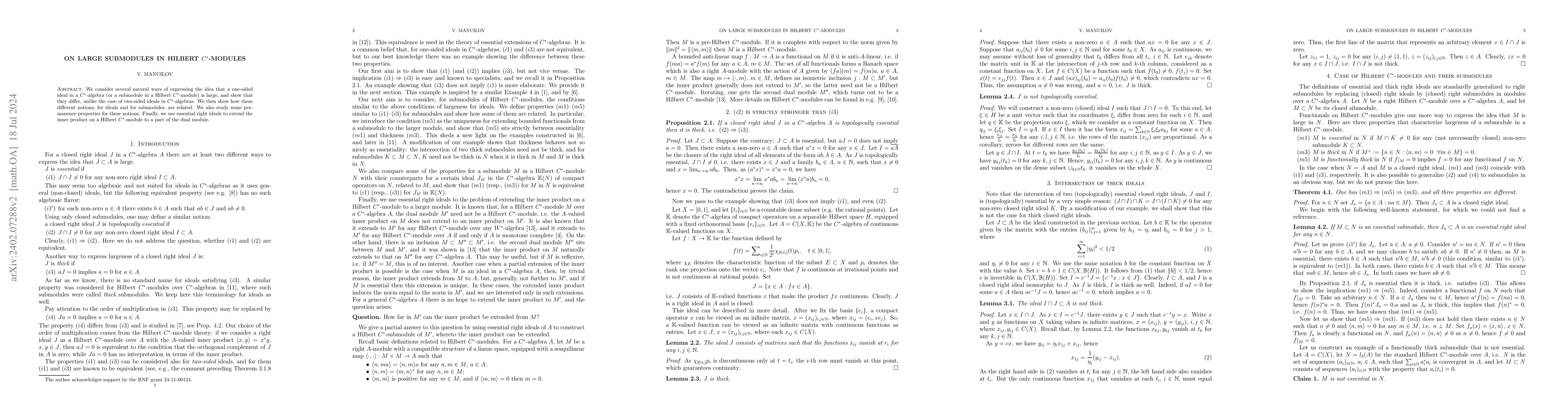 Summary: This paper extends the inner product on a Hilbert C*-module $M$ using essential ideals in a C*-algebra $A$, leading to a broader C*-submodule within the dual Banach module $M'$, potentially surpassing the second dual module $M''$.
