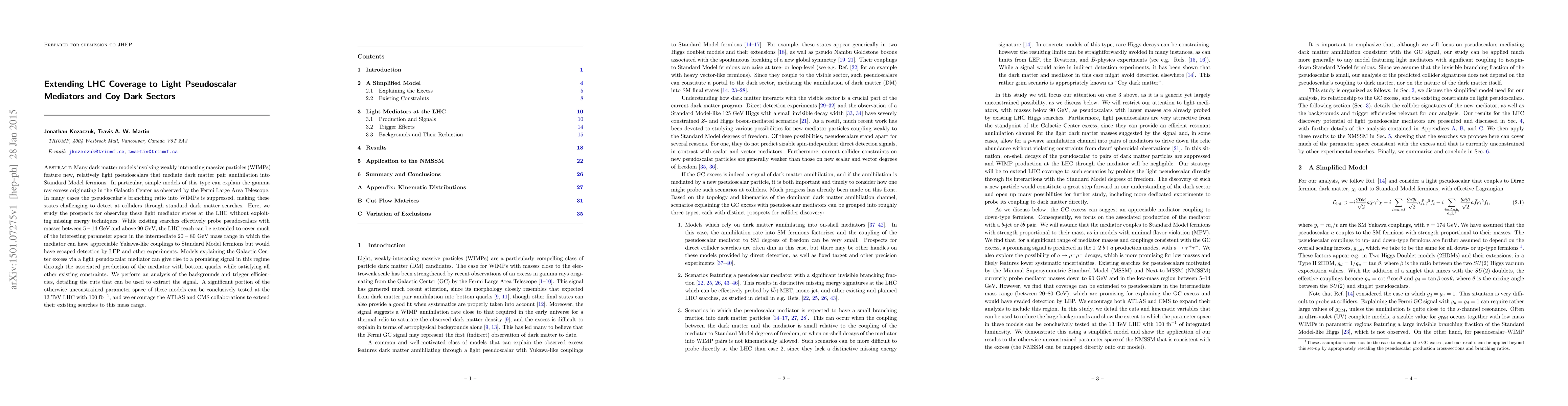 Many dark matter models involving weakly interacting massive particles (WIMPs) feature new, relatively light pseudoscalars that mediate dark matter pair annihilation into Standard Model fermions. In particular, simple models of this type can explain the gamma ray excess originating in the Galactic Center as observed by the Fermi Large Area Telescope. In many cases the pseudoscalar's branching ratio into WIMPs is suppressed, making these states challenging to detect at colliders through standard dark matter searches. Here, we study the prospects for observing these light mediator states at the LHC without exploiting missing energy techniques. While existing searches effectively probe pseudoscalars with masses between 5 - 14 GeV and above 90 GeV, the LHC reach can be extended to cover much of the interesting parameter space in the intermediate 20 - 80 GeV mass range in which the mediator can have appreciable Yukawa-like couplings to Standard Model fermions but would have escaped detection by LEP and other experiments. Models explaining the Galactic Center excess via a light pseudoscalar mediator can give rise to a promising signal in this regime through the associated production of the mediator with bottom quarks while satisfying all other existing constraints. We perform an analysis of the backgrounds and trigger efficiencies, detailing the cuts that can be used to extract the signal. A significant portion of the otherwise unconstrained parameter space of these models can be conclusively tested at the 13 TeV LHC with 100 fb$^{-1}$, and we encourage the ATLAS and CMS collaborations to extend their existing searches to this mass range.