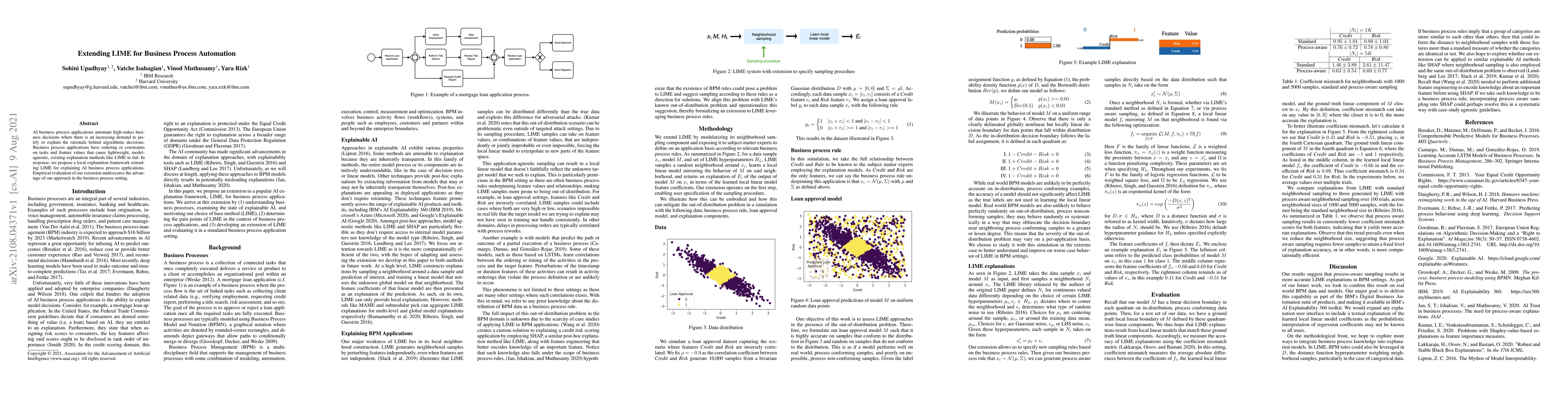 AI business process applications automate high-stakes business decisions where there is an increasing demand to justify or explain the rationale behind algorithmic decisions. Business process applications have ordering or constraints on tasks and feature values that cause lightweight, model-agnostic, existing explanation methods like LIME to fail. In response, we propose a local explanation framework extending LIME for explaining AI business process applications. Empirical evaluation of our extension underscores the advantage of our approach in the business process setting.