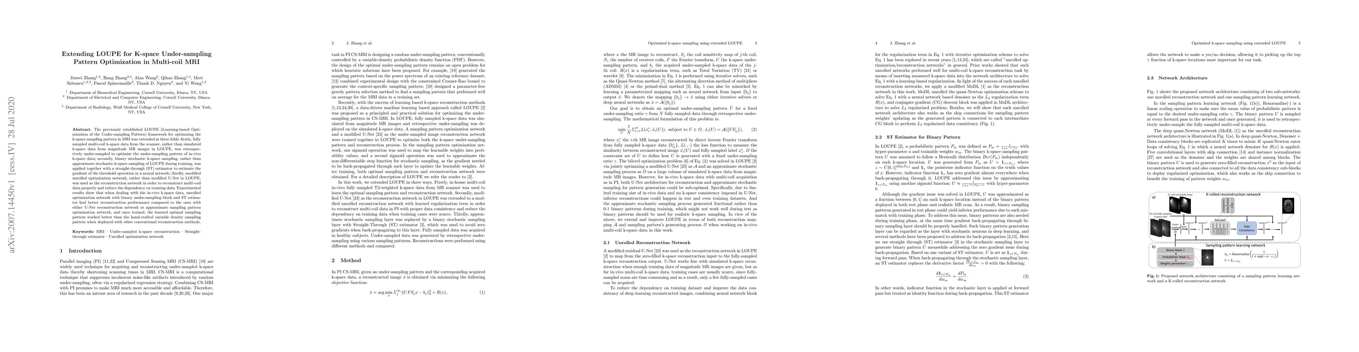 This paper extends the LOUPE framework to optimize k-space sampling patterns in multi-coil MRI using real in-vivo data, binary stochastic sampling, and an unrolled optimization network for improved reconstruction performance compared to U-Net and approximate sampling. The trained optimal sampling pattern outperforms conventional methods.