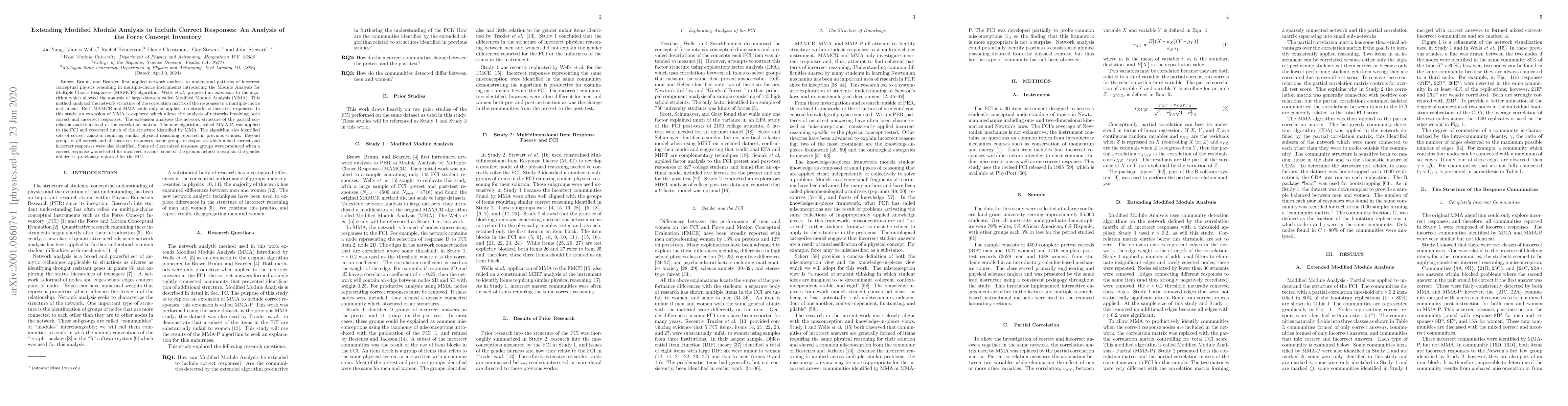 This study extends Modified Module Analysis (MMA) to include both correct and incorrect responses, introducing MMA-P. Applied to the Force Concept Inventory (FCI), MMA-P identified networks of correct responses requiring similar reasoning and mixed response groups, revealing underlying gender biases in the FCI.