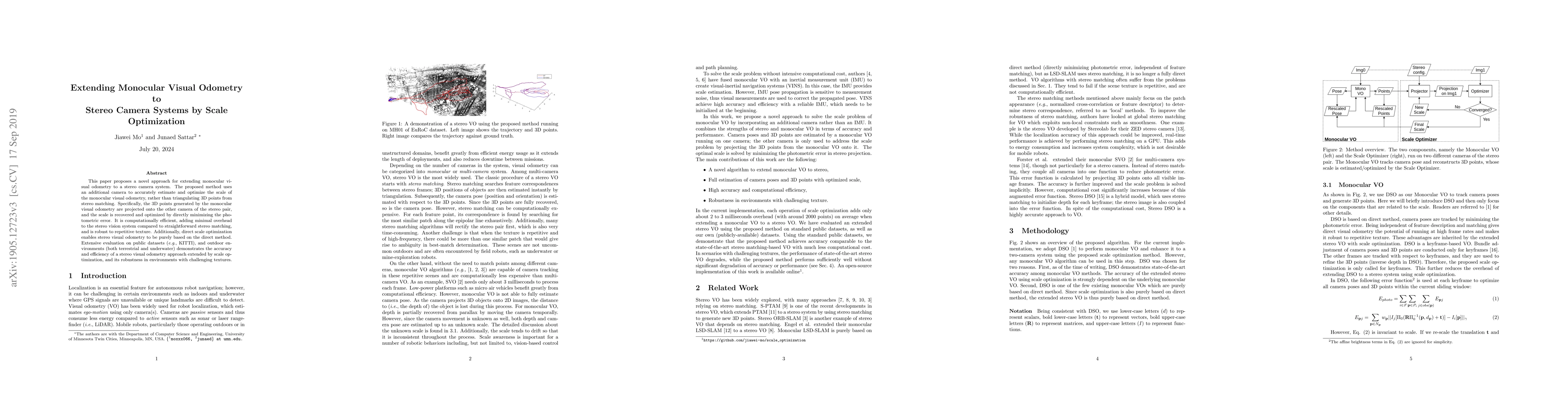 This paper introduces a method to extend monocular visual odometry to stereo systems by optimizing scale through photometric error minimization, rather than stereo triangulation. It demonstrates accuracy and efficiency on public datasets and diverse environments, showing robustness to repetitive textures.