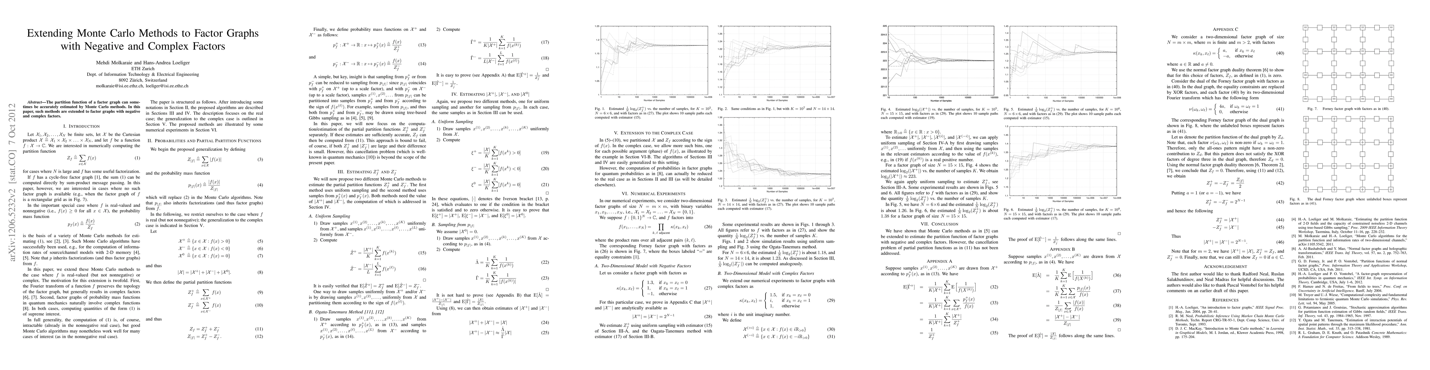 The partition function of a factor graph can sometimes be accurately estimated by Monte Carlo methods. In this paper, such methods are extended to factor graphs with negative and complex factors.
