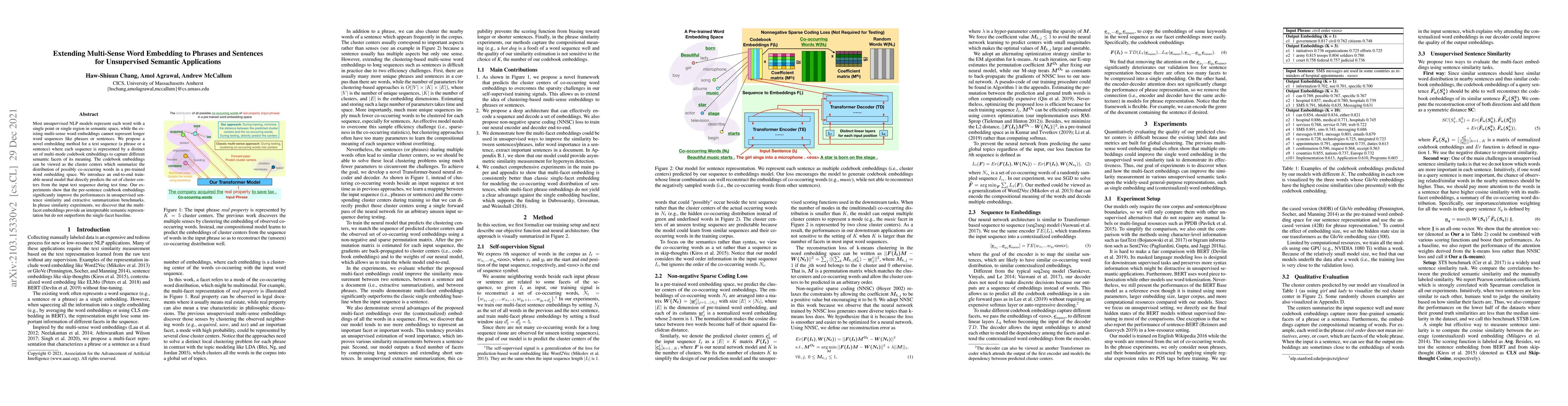 This paper proposes a novel method to extend multi-sense word embeddings to phrases and sentences, using distinct sets of multi-mode codebook embeddings to capture different semantic facets. The method improves unsupervised semantic applications like sentence similarity and summarization.