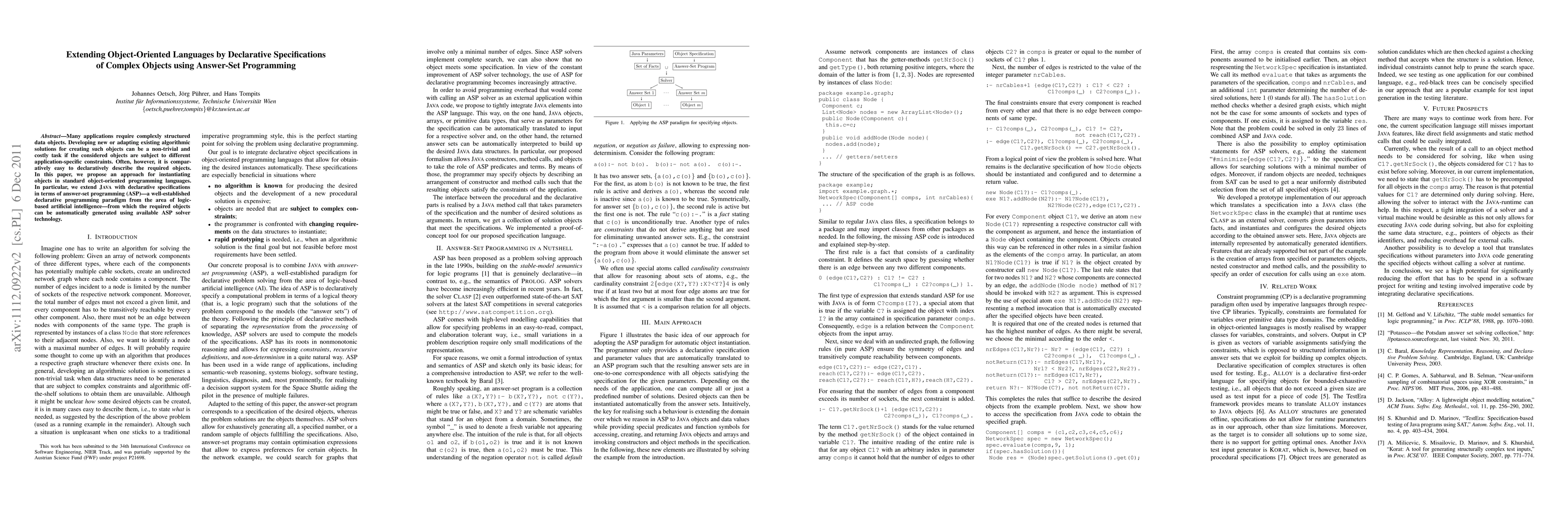 This paper proposes using answer-set programming (ASP) to declaratively specify complex objects in object-oriented languages like Java, enabling automatic generation of these objects through ASP solvers, thereby simplifying the development process for applications with intricate object constraints.