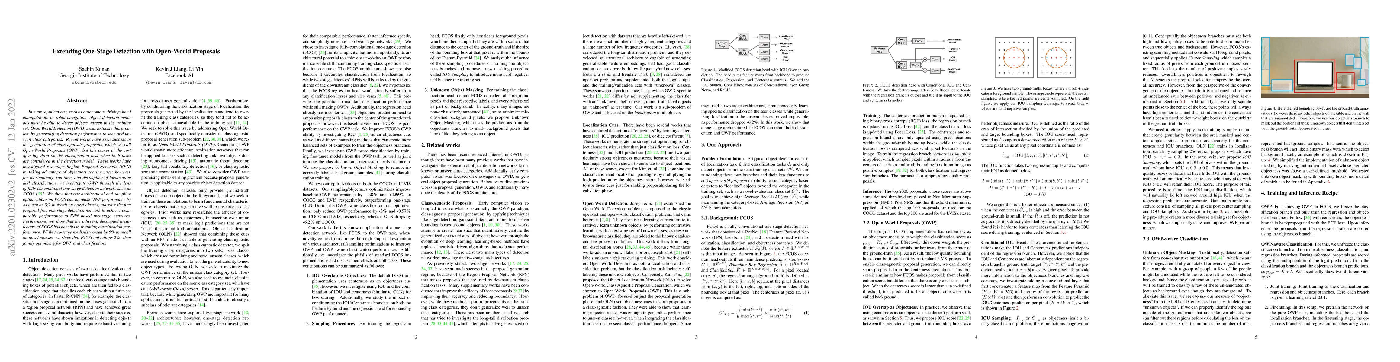 In many applications, such as autonomous driving, hand manipulation, or robot navigation, object detection methods must be able to detect objects unseen in the training set. Open World Detection(OWD) seeks to tackle this problem by generalizing detection performance to seen and unseen class categories. Recent works have seen success in the generation of class-agnostic proposals, which we call Open-World Proposals(OWP), but this comes at the cost of a big drop on the classification task when both tasks are considered in the detection model. These works have investigated two-stage Region Proposal Networks (RPN) by taking advantage of objectness scoring cues; however, for its simplicity, run-time, and decoupling of localization and classification, we investigate OWP through the lens of fully convolutional one-stage detection network, such as FCOS. We show that our architectural and sampling optimizations on FCOS can increase OWP performance by as much as 6% in recall on novel classes, marking the first proposal-free one-stage detection network to achieve comparable performance to RPN-based two-stage networks. Furthermore, we show that the inherent, decoupled architecture of FCOS has benefits to retaining classification performance. While two-stage methods worsen by 6% in recall on novel classes, we show that FCOS only drops 2% when jointly optimizing for OWP and classification.