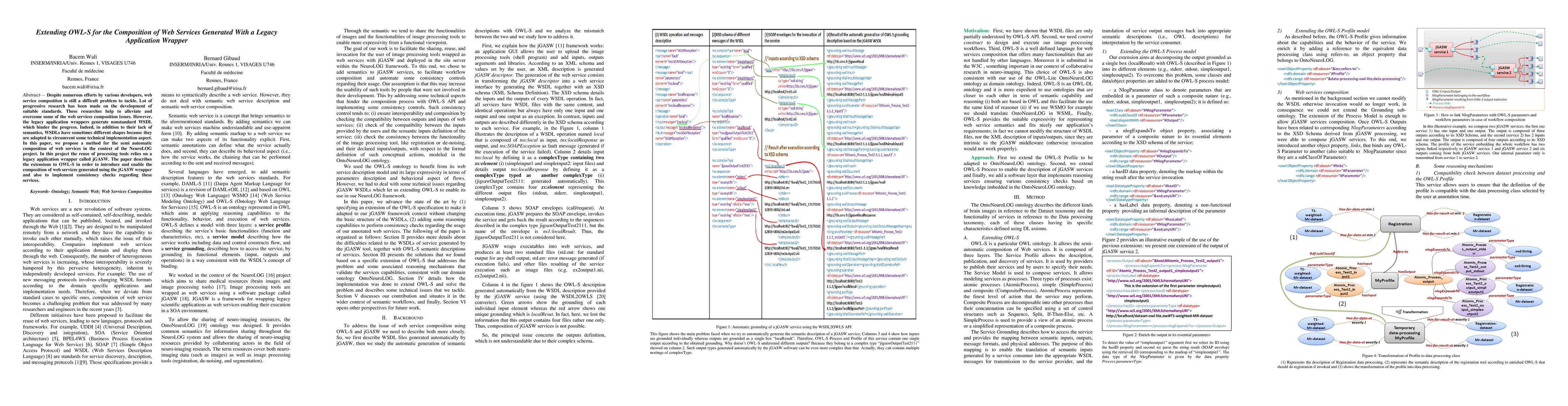 Researchers propose an extension to OWL-S for composing web services generated with a legacy application wrapper, enabling semi-automatic composition and consistency checks in the NeuroLOG project.