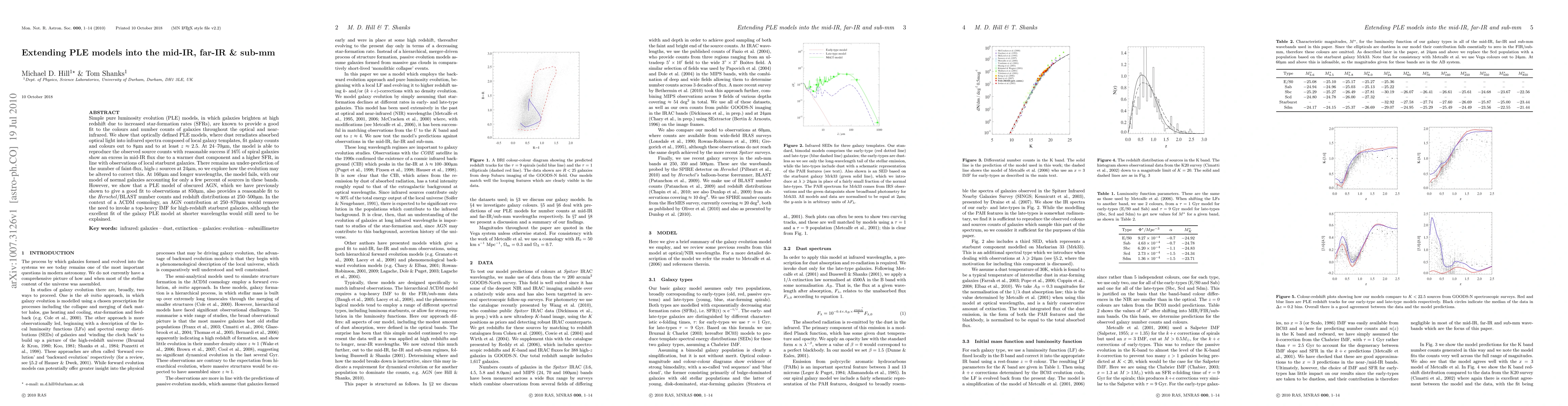 This research extends pure luminosity evolution (PLE) models to mid-infrared, far-infrared, and sub-millimeter wavelengths, showing that they fit optical and near-IR galaxy data well. The study finds that spiral galaxies exhibit a 16% mid-IR flux excess, linked to higher star-formation rates. While PLE models underestimate faint, high-z sources at 24um, they successfully replicate source counts at 160um and longer with an added obscured AGN model. This suggests that a top-heavy IMF for high-redshift starburst galaxies might not be necessary in a LCDM cosmology.