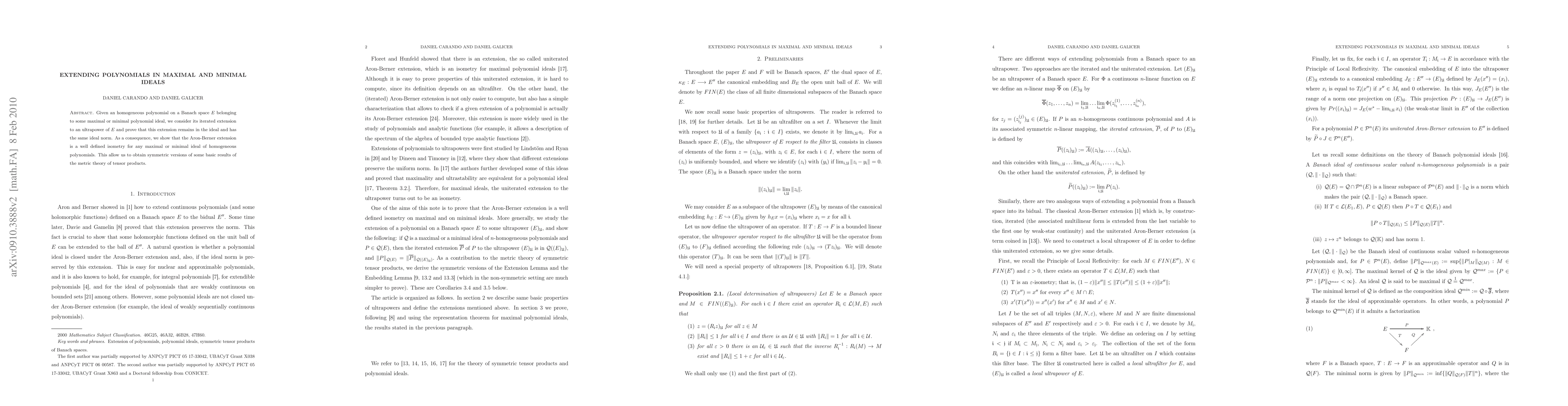 Given an homogeneous polynomial on a Banach space $E$ belonging to some maximal or minimal polynomial ideal, we consider its iterated extension to an ultrapower of $E$ and prove that this extension remains in the ideal and has the same ideal norm. As a consequence, we show that the Aron-Berner extension is a well defined isometry for any maximal or minimal ideal of homogeneous polynomials. This allow us to obtain symmetric versions of some basic results of the metric theory of tensor products.