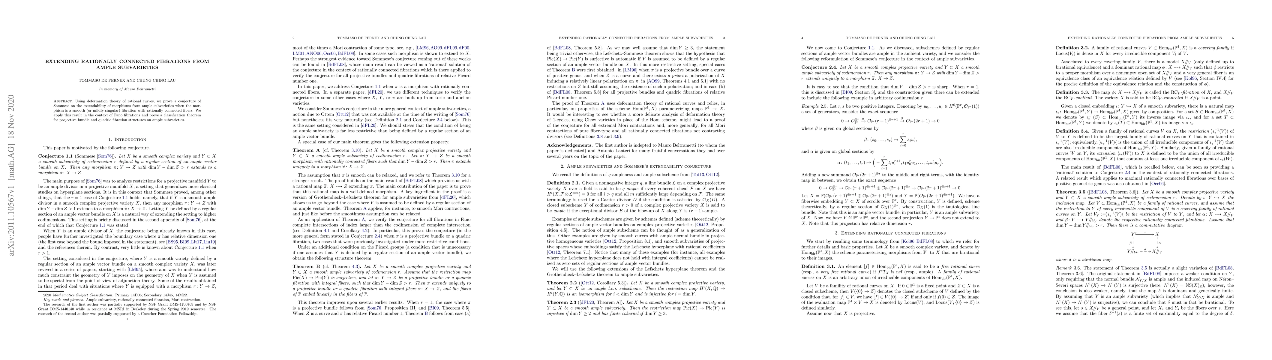 This research proves a conjecture by Sommese on extending smooth or mildly singular fibrations with rationally connected fibers from ample subvarieties using deformation theory. The study also classifies projective and quadric fibration structures on ample subvarieties.