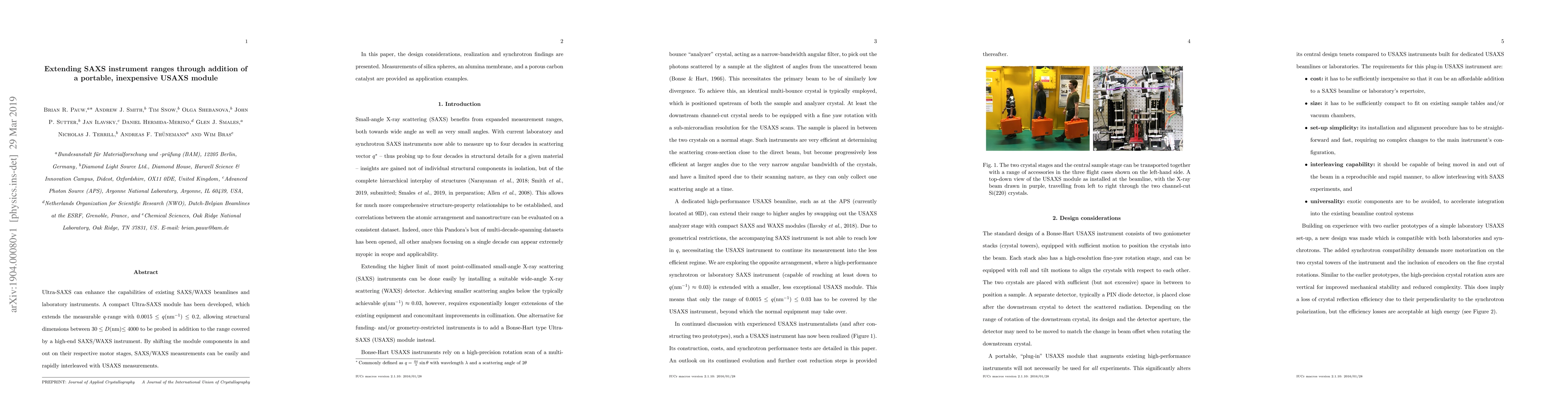 This paper presents a compact, portable Ultra-SAXS module that extends the low-$q$ range of existing SAXS/WAXS instruments, enabling the probing of structural dimensions from 30 to 4000 nm. The module allows for seamless interleaving of SAXS/WAXS and USAXS measurements, demonstrated through applications on silica spheres, an alumina membrane, and a porous carbon catalyst.