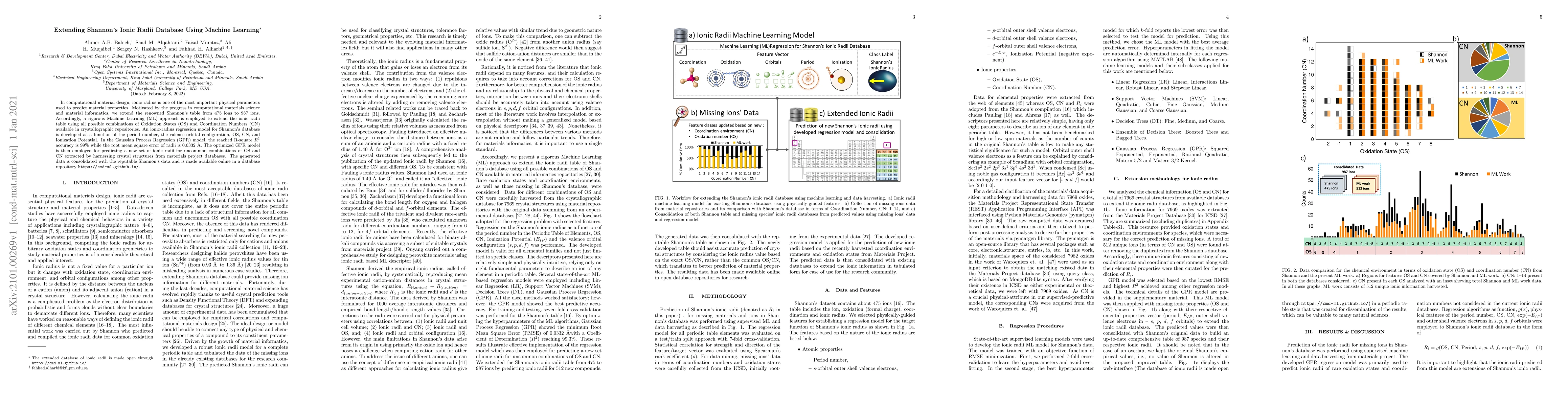 The paper presents a machine learning-based approach to extend Shannon's ionic radii database, employing a Gaussian Process Regression model that accurately predicts ionic radii for uncommon oxidation states and coordination numbers.